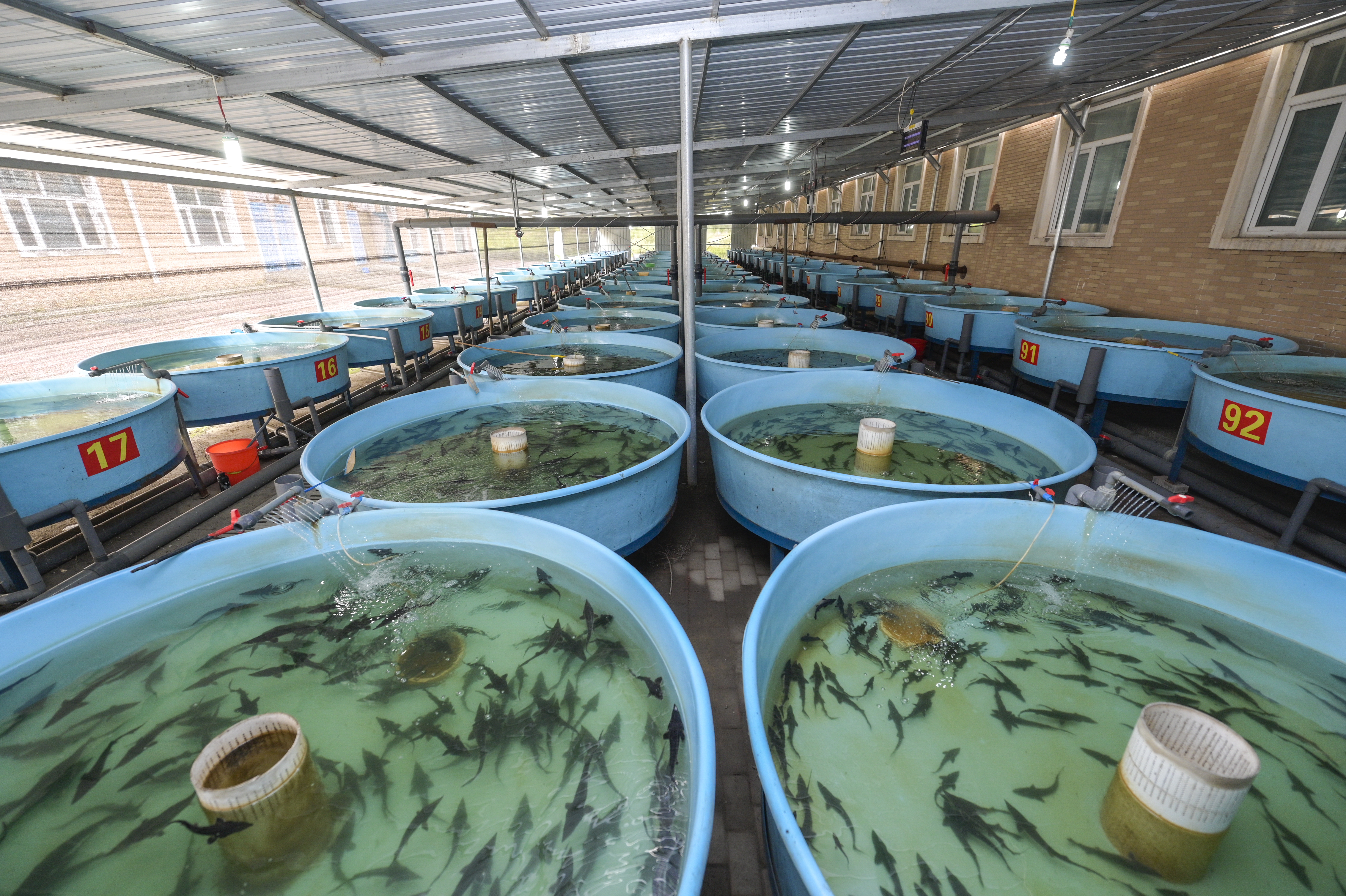 黑龍江水產(chǎn)研究所呼蘭水產(chǎn)試驗(yàn)場,上萬尾鱘鰉魚苗在池子內(nèi)歡快地游動(dòng),小精靈們或是頂著尖尖的嘴角涌出水面,或是亮出白花花的肚皮來段“仰泳”,非常可愛。