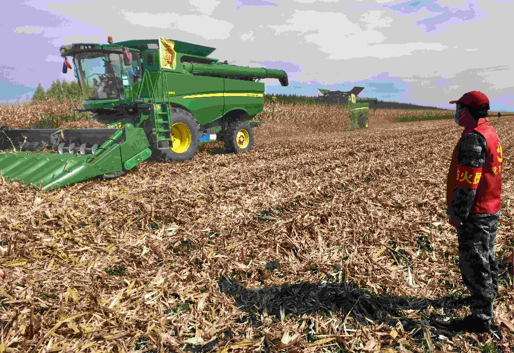 大型收獲機(jī)集群作業(yè)搶收玉米