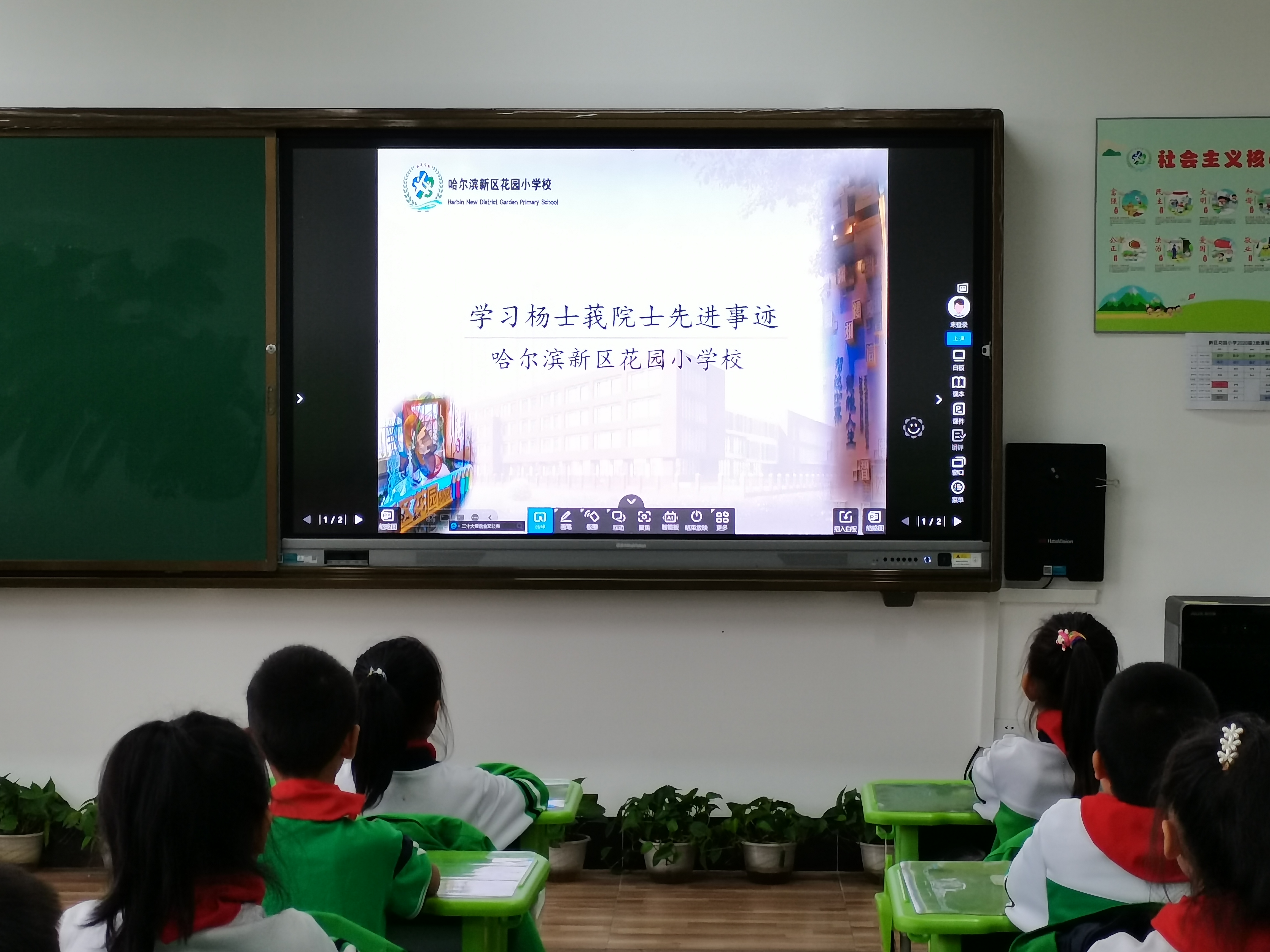 哈爾濱市新區(qū)花園小學(xué)召開《科學(xué)家——我心中的“星”》主題班會。班會中,三年級全體同學(xué)學(xué)習(xí)了中國工程院院士、哈爾濱工程大學(xué)教授楊士莪的先進事跡,向潛心鉆研的科學(xué)家致敬。