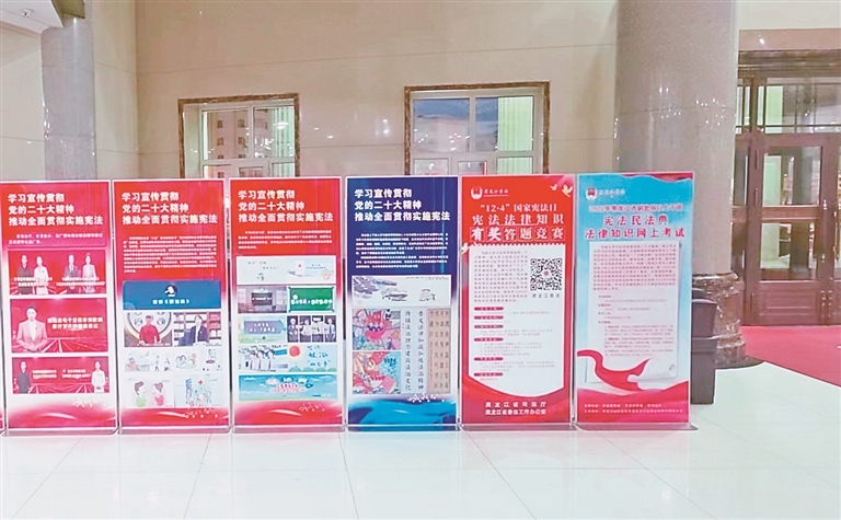 今年12月4日是第九個國家憲法日,也是我國現(xiàn)行憲法公布施行40周年。今年憲法宣傳周主題是“學(xué)習(xí)宣傳貫徹黨的二十大精神,推動全面貫徹實施憲法”。連日來,我省各地堅持將憲法宣傳周集中宣傳與經(jīng)常性的宣傳有機結(jié)合,推動憲法學(xué)習(xí)宣傳常態(tài)化、制度化。在企業(yè)、在農(nóng)村、在機關(guān)、在校園、在社區(qū)、在軍營、在網(wǎng)絡(luò)……憲法精神以靈活多樣的形式走進千家萬戶,深深地根植于每個人的心底,尊法學(xué)法守法用法在龍江大地蔚然成風(fēng)。