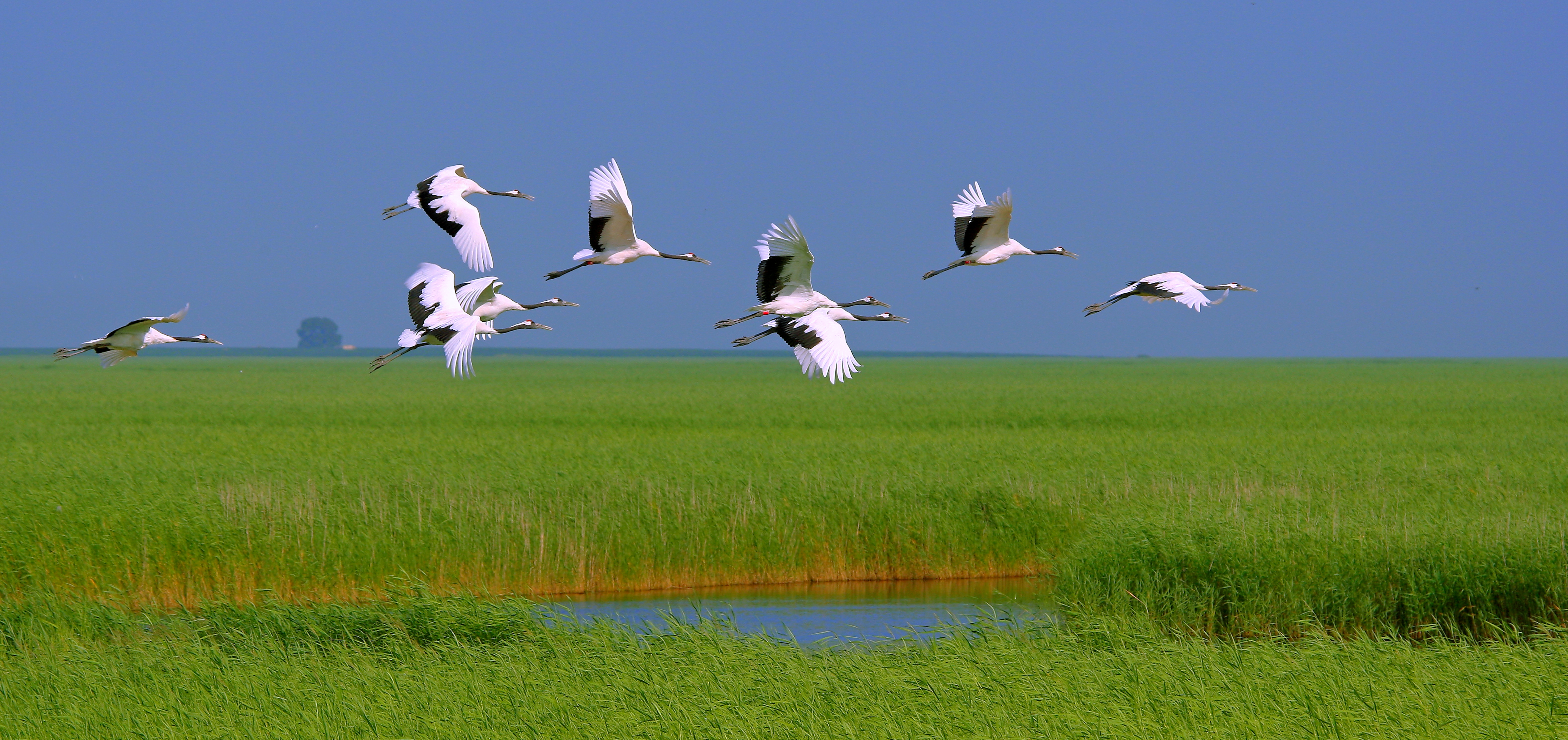 穿過連綿無際的大森林,來到遼闊壯美的大濕地,一群丹頂鶴在藍天白云上展翅翱翔。扎龍濕地湖澤密布,葦草叢生,物種豐富,是丹頂鶴等水禽鳥類棲息繁衍的天然樂園。重新制定頒布的《黑龍江省濕地保護條例》,進一步加大了濕地保護力度。截至目前,全省完成退耕還濕3.7萬公頃,濕地面積達到350萬公頃,位居全國第4位。扎龍濕地、洪河濕地、三江濕地等10處濕地列入《國際重要濕地名錄》,數(shù)量位居全國第一。