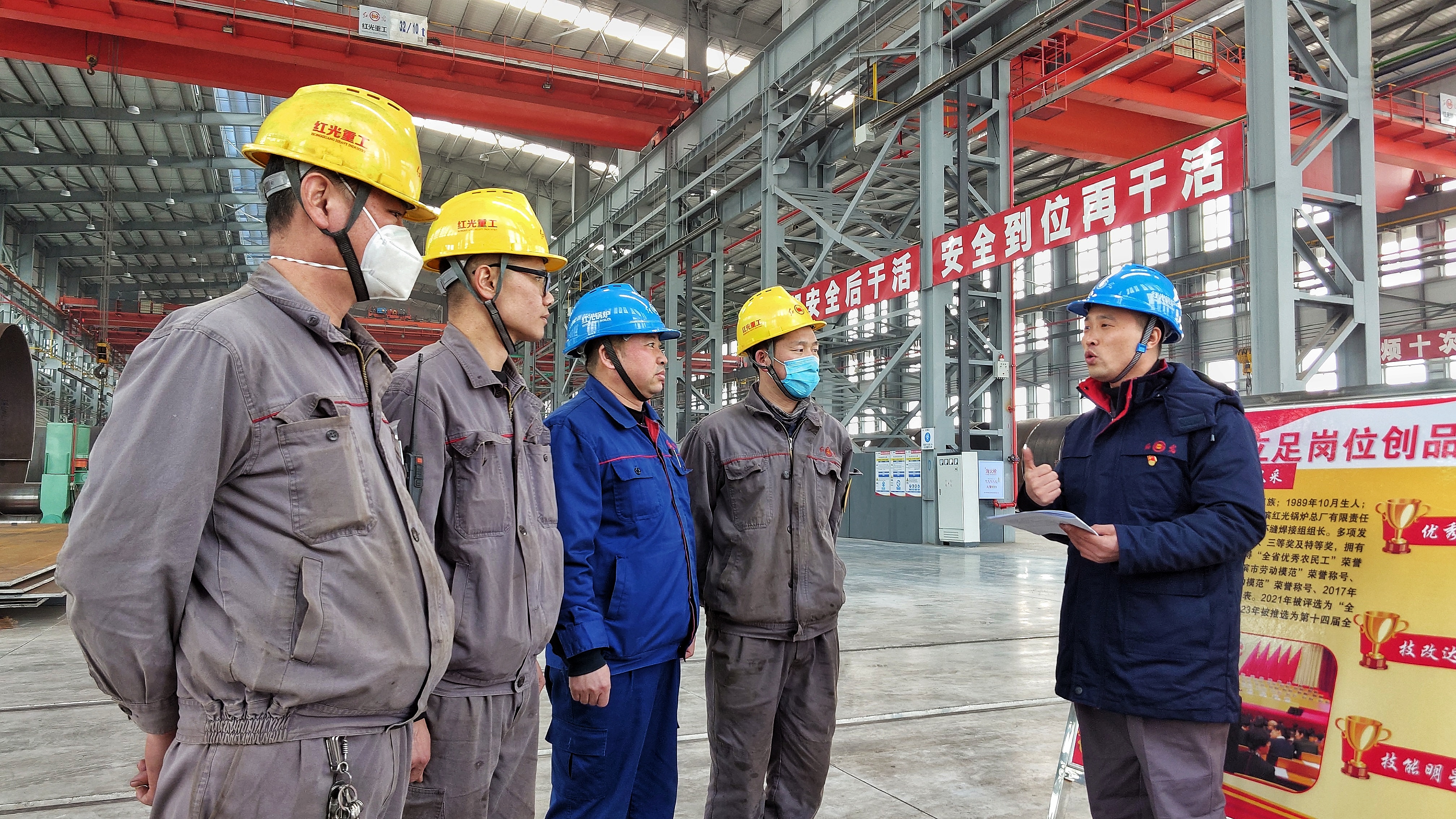 全國(guó)兩會(huì)剛結(jié)束,已經(jīng)回到工作崗位的全國(guó)人大代表、哈爾濱紅光重工有限公司環(huán)縫焊接組組長(zhǎng)周曉龍第一時(shí)間將全國(guó)兩會(huì)精神分享給工友們。