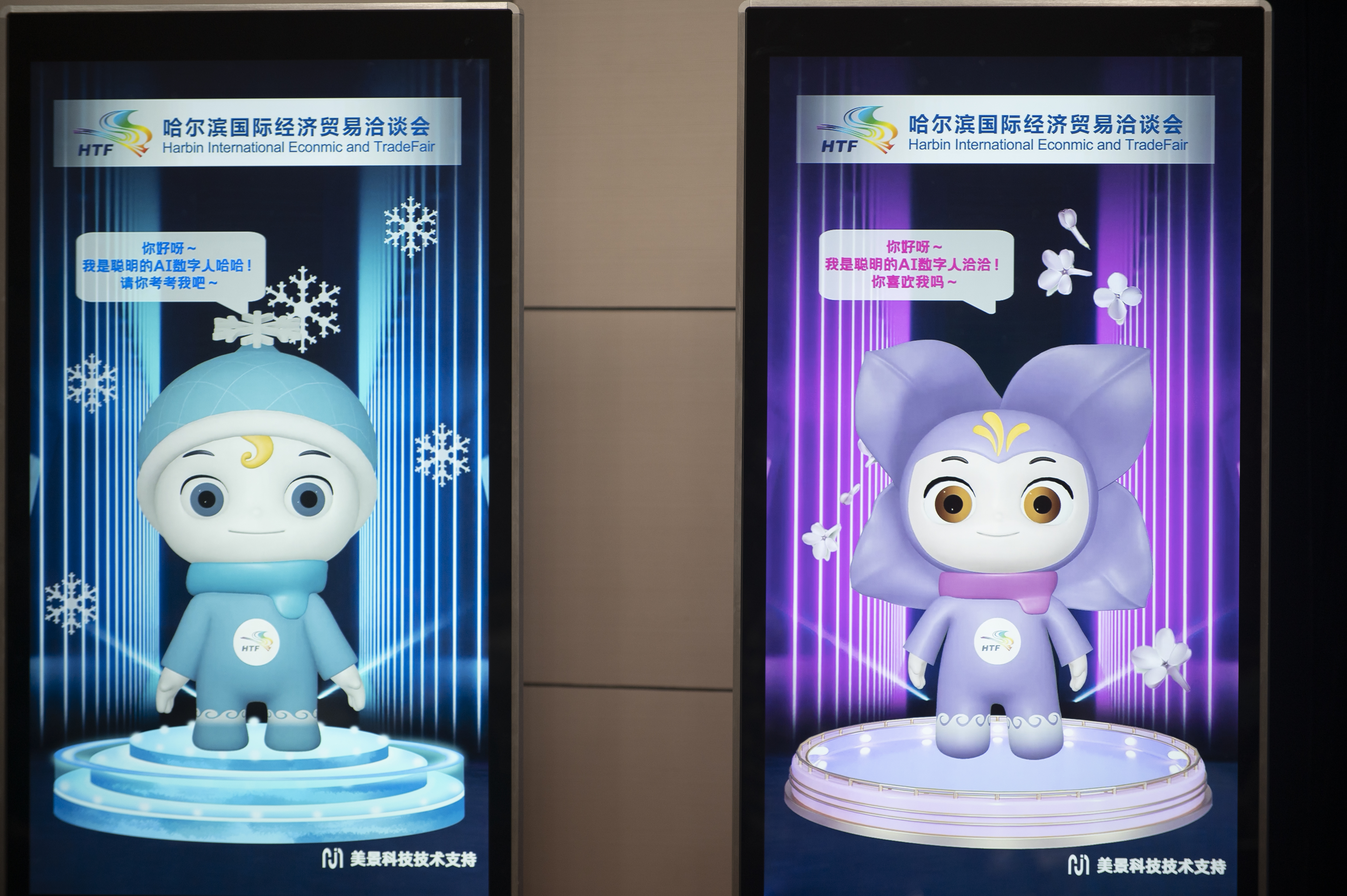 “今天,我很榮幸為大家介紹兩位可愛的小朋友‘哈哈’和‘洽洽’。與以往IP形象不同的是,它們是可以與大家互動的智能數(shù)字IP形象。它們腳踩浪花,乘風破浪,將陪伴大家共赴哈洽盛會?!?日召開的第三十二屆哈爾濱國際經(jīng)濟貿易洽談會新聞發(fā)布會上,在黑龍江省人民政府副秘書長馬里的介紹下,哈洽會吉祥物“哈哈”和“洽洽”在參會的中外記者面前亮相。