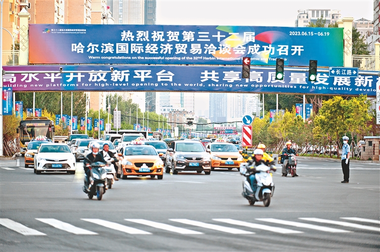 13日,距離哈洽會(huì)正式開(kāi)幕還有兩天時(shí)間,哈爾濱市各主要街道已經(jīng)布置起了哈洽會(huì)相關(guān)宣傳旗幟,城市公共交通也布置了哈洽會(huì)相關(guān)宣傳畫(huà),供行人掃碼關(guān)注哈洽會(huì)相關(guān)內(nèi)容。同時(shí),哈爾濱市美化了音樂(lè)公園等105處重要點(diǎn)位,亮化樓體365棟、18座橋體。哈洽會(huì)元素遍布大街小巷,整座城市一鍵換新,冰城“哈洽氛圍”拉滿。