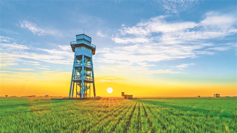 每年豐收時(shí)節(jié),在哈同高速公路旁就能看到富錦市的地標(biāo)“海稻船”。這個(gè)獨(dú)具創(chuàng)意的船型建筑位于富錦市長(zhǎng)安鎮(zhèn)永勝村富錦萬(wàn)畝水稻科技示范園,每年有數(shù)以萬(wàn)計(jì)的游客來(lái)此觀光,帶動(dòng)了周邊鄉(xiāng)村游?,F(xiàn)代農(nóng)業(yè)科技和互聯(lián)網(wǎng)技術(shù)的投入,讓這里處處散發(fā)著“智慧”味道。水稻生長(zhǎng)季,通過(guò)手機(jī)上的一款A(yù)PP就可以實(shí)時(shí)監(jiān)測(cè)水稻的生長(zhǎng)情況。科技發(fā)達(dá)了,莊稼地變得越來(lái)越“聰明”,讓農(nóng)民“偷會(huì)兒懶”也能迎來(lái)豐收。
