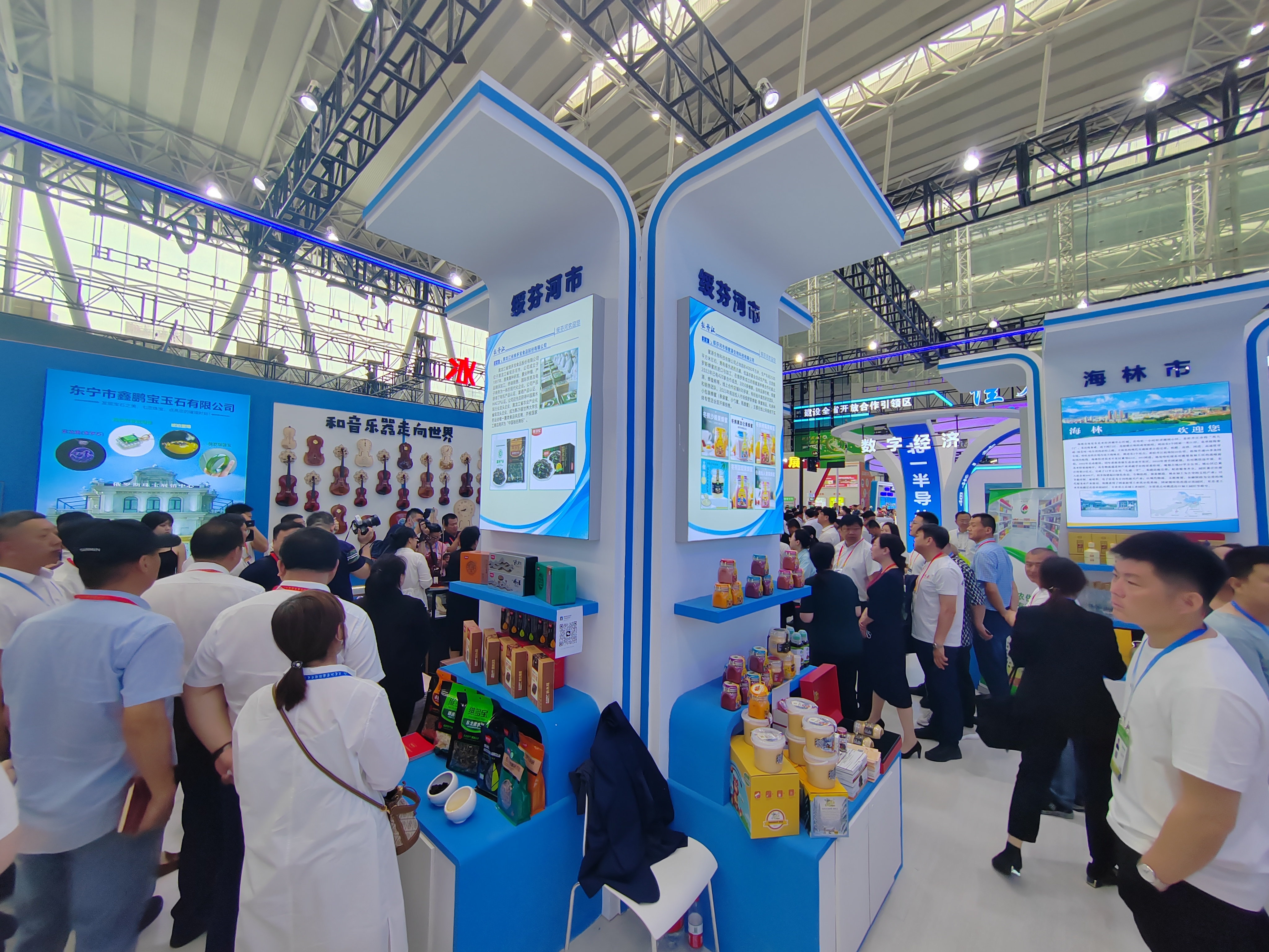 本屆哈洽會(huì),綏芬河市展覽總面積約310平方米,包括牡丹江展廳綏芬河展區(qū)、室外展區(qū)綏芬河市獨(dú)立特裝展廳以及中俄項(xiàng)目推介對(duì)接交流會(huì)會(huì)場(chǎng)標(biāo)變展位。綏芬河共組織80家企業(yè)參展,展品囊括酒水飲料、休閑食品、日化用品、木材、糧食等十余大類150多個(gè)品種。