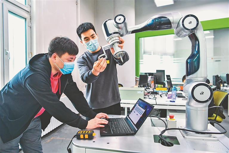 思靈機(jī)器人創(chuàng)業(yè)團(tuán)隊(duì)調(diào)試機(jī)械臂。
