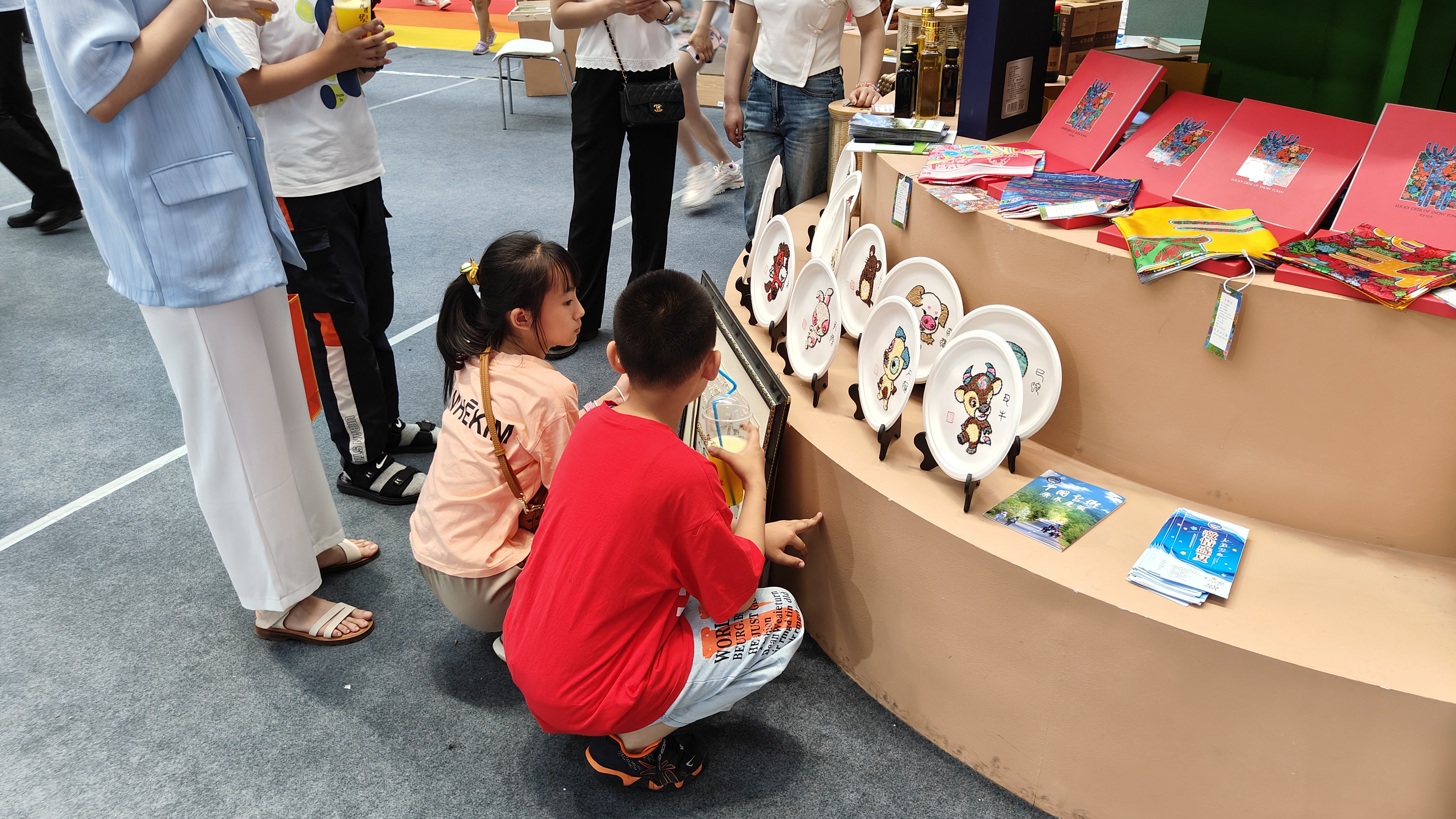“阿姨,這圓盤上的生肖畫是用什么制作的,太可愛了。”“這是用種子和糧食制作的,叫做五谷糧食畫,又稱五谷畫、糧食畫或米畫,象征五谷豐登、國泰民安,是一種古老的中國傳統(tǒng)民間藝術(shù)。這種畫立體感強,具有強烈的視覺沖擊力。”一旁的工作人員耐心介紹。