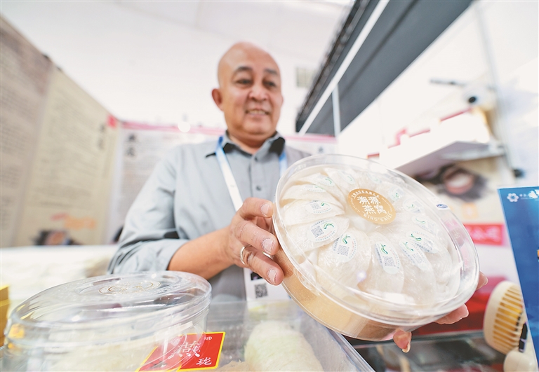 “參展2天,意向客戶已超50名!”東莞乳圓智能科技有限公司市場部經(jīng)理黃春發(fā)開心地說。除了廣東參展企業(yè)收獲頗豐外,來自臺灣、香港、澳門的客商也云集于此,香港的牛肉干、臺灣的琺華彩瓷器、澳門的豬肉脯和臘腸……港澳臺僑多家企業(yè)帶來農(nóng)產(chǎn)品、休閑食品、工藝日用品等多個領(lǐng)域展品亮相哈洽會,吸引了無數(shù)目光。