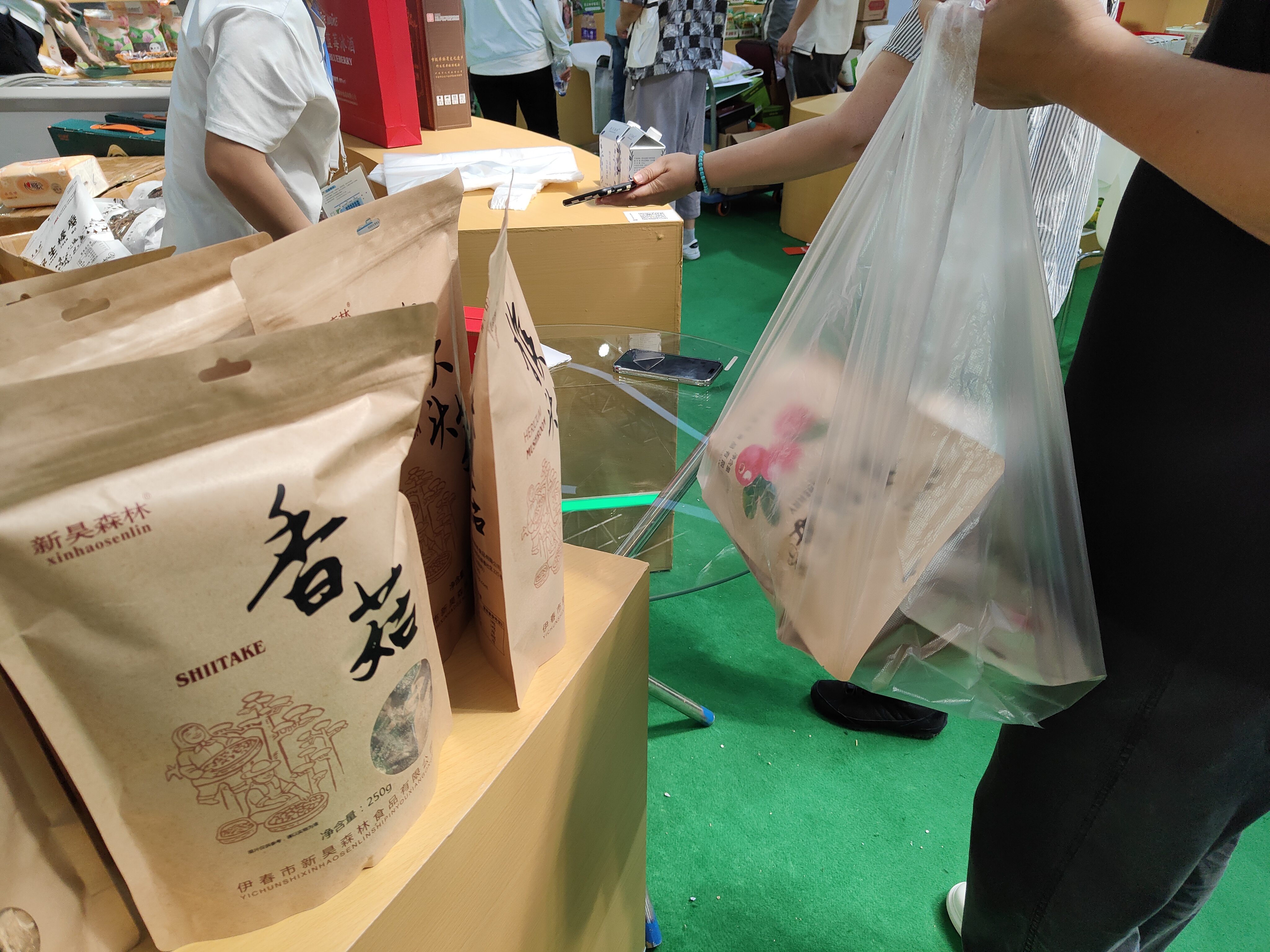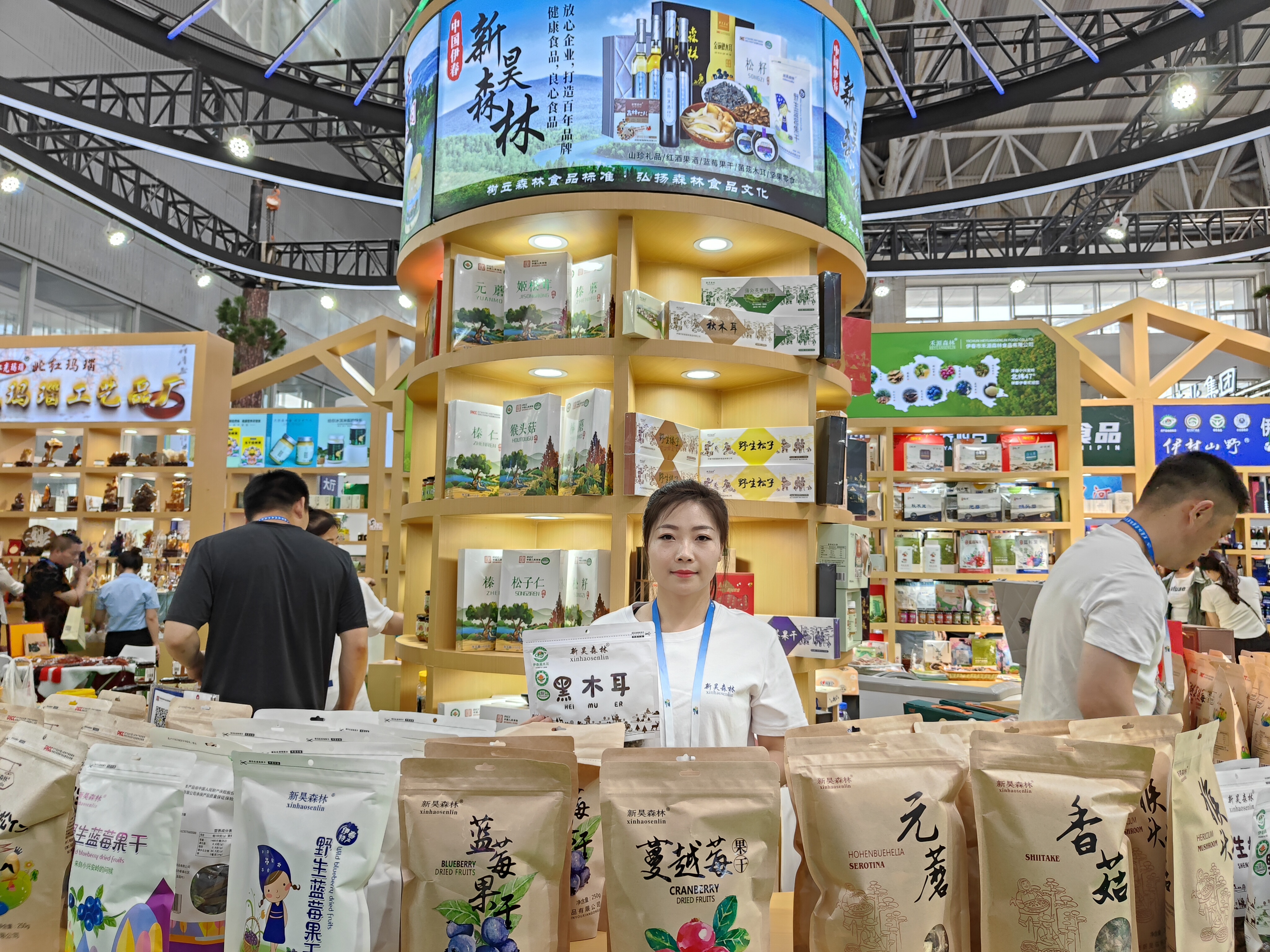 在“黑土優(yōu)品”授權(quán)企業(yè)伊春市新昊森林食品有限公司的展區(qū),也聚滿了前來咨詢的顧客。