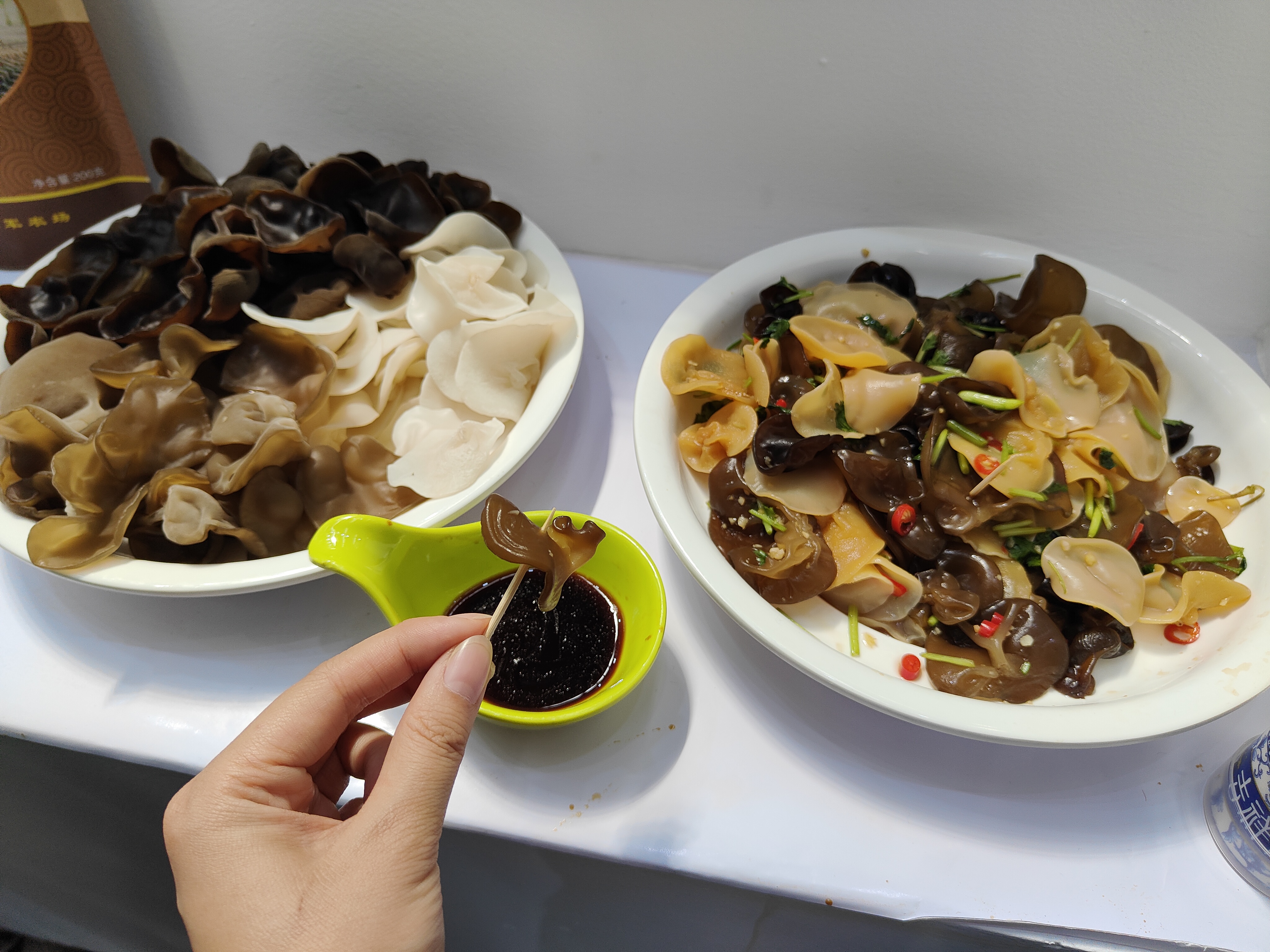 在北大荒集團黑龍江延軍農(nóng)場有限公司的展示臺上,由春耳、秋耳、白玉木耳組成的“三色木耳”吸引了大量消費者,沾上蘸料吃進嘴里,那叫一個“鮮”!