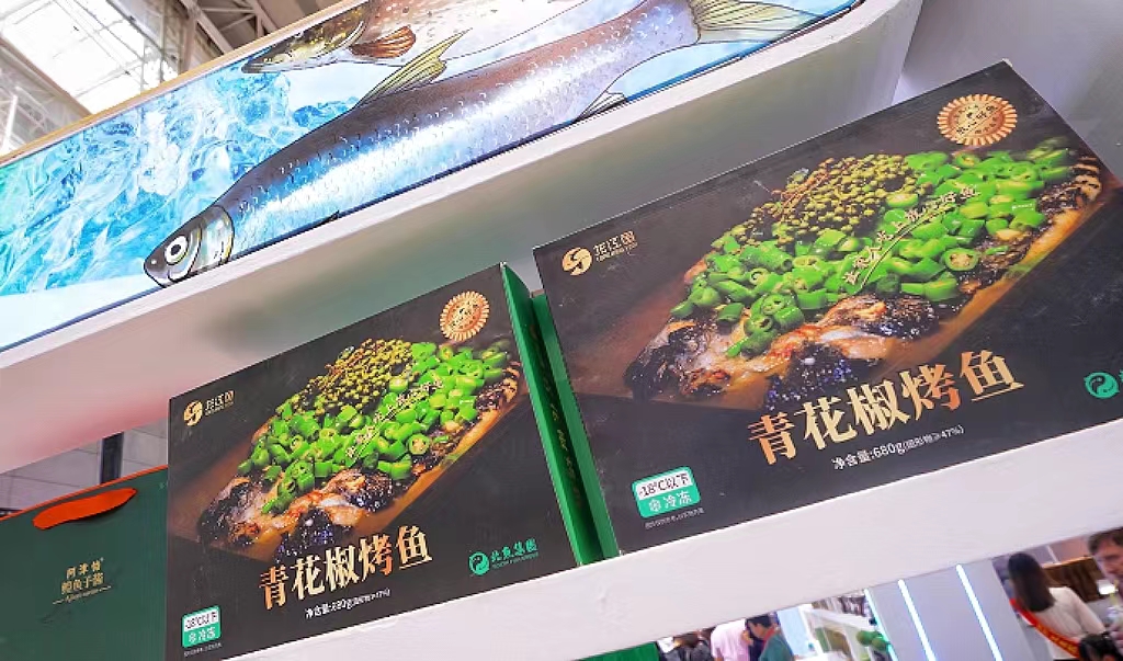 在省旅投集團展廳,水箱內(nèi)展出的鱘鰉魚、鱖魚、鯽魚等活魚吸引了不少人的目光。在“黑土優(yōu)品”展館,金湯酸菜魚、川香水煮魚、得莫力燉魚、香熏大馬哈魚和青花椒烤魚等數(shù)十款預(yù)制菜令人垂涎欲滴。