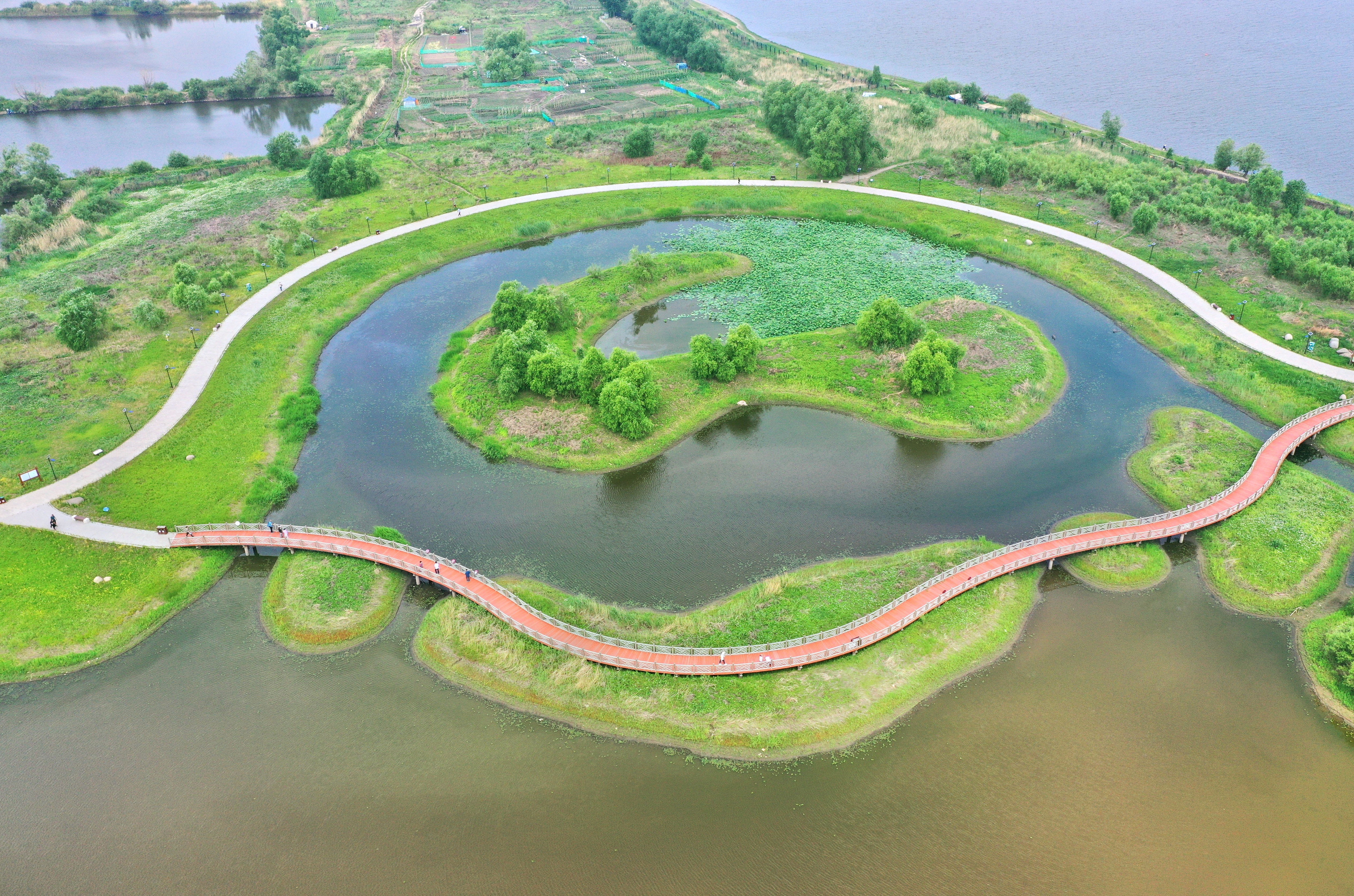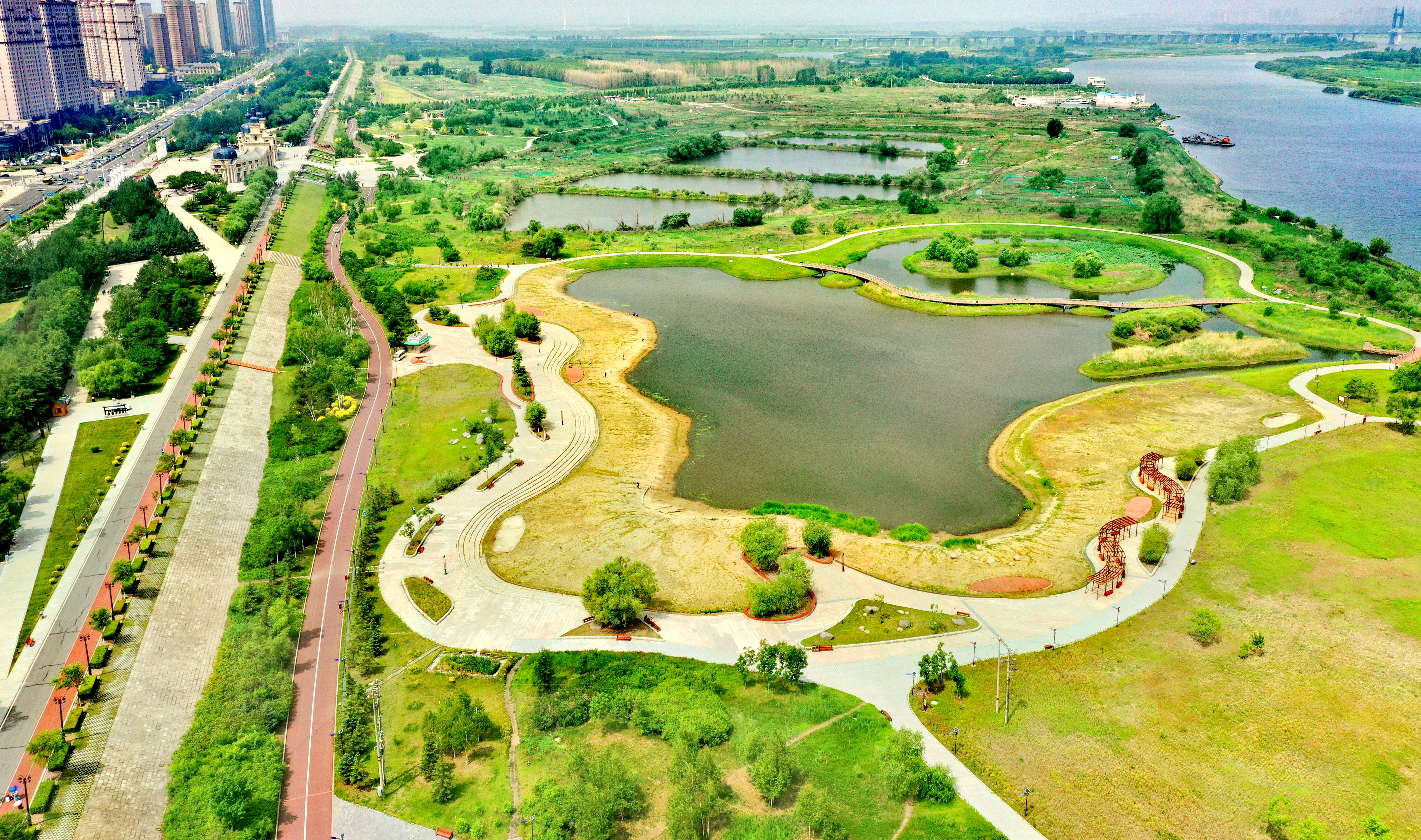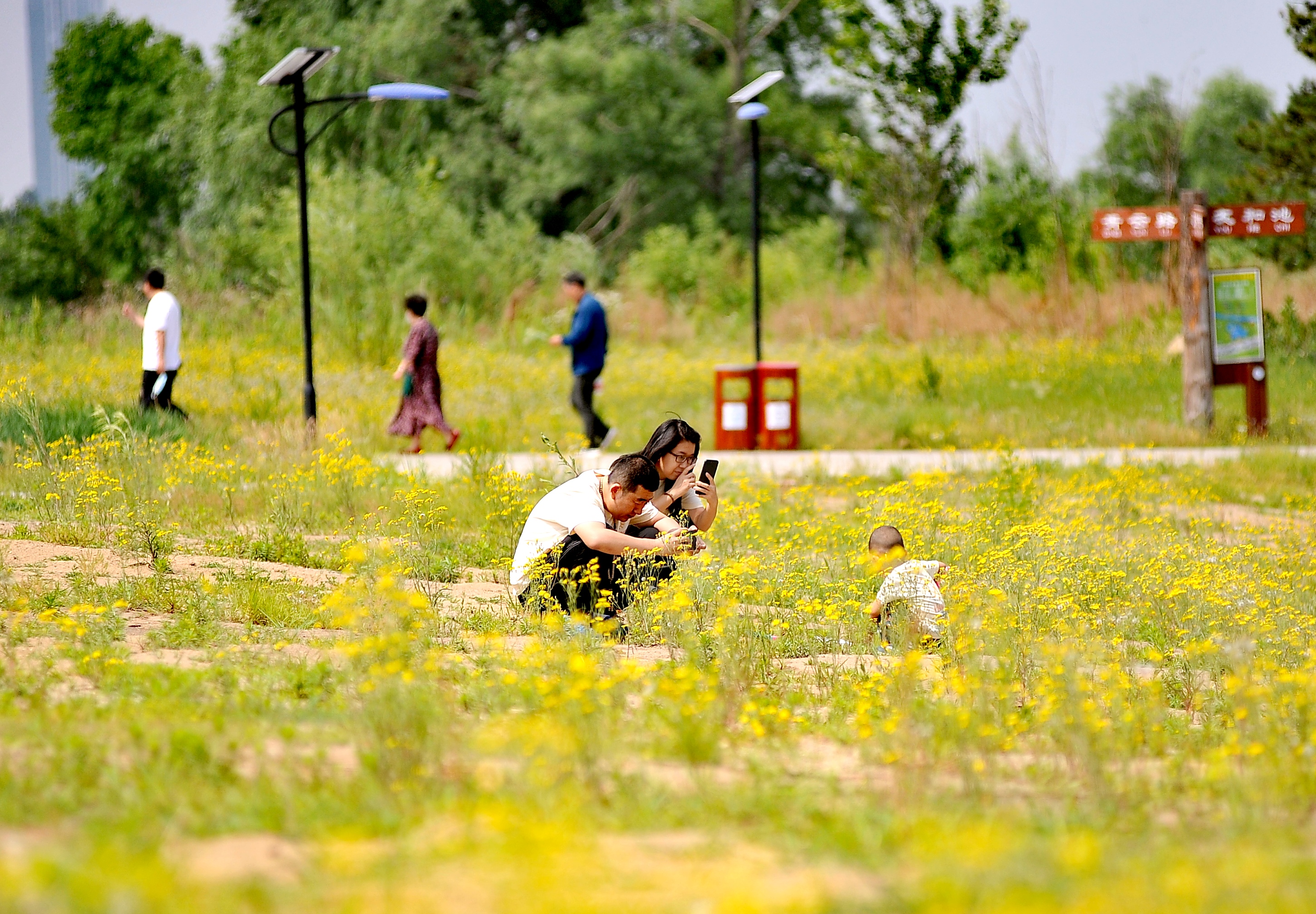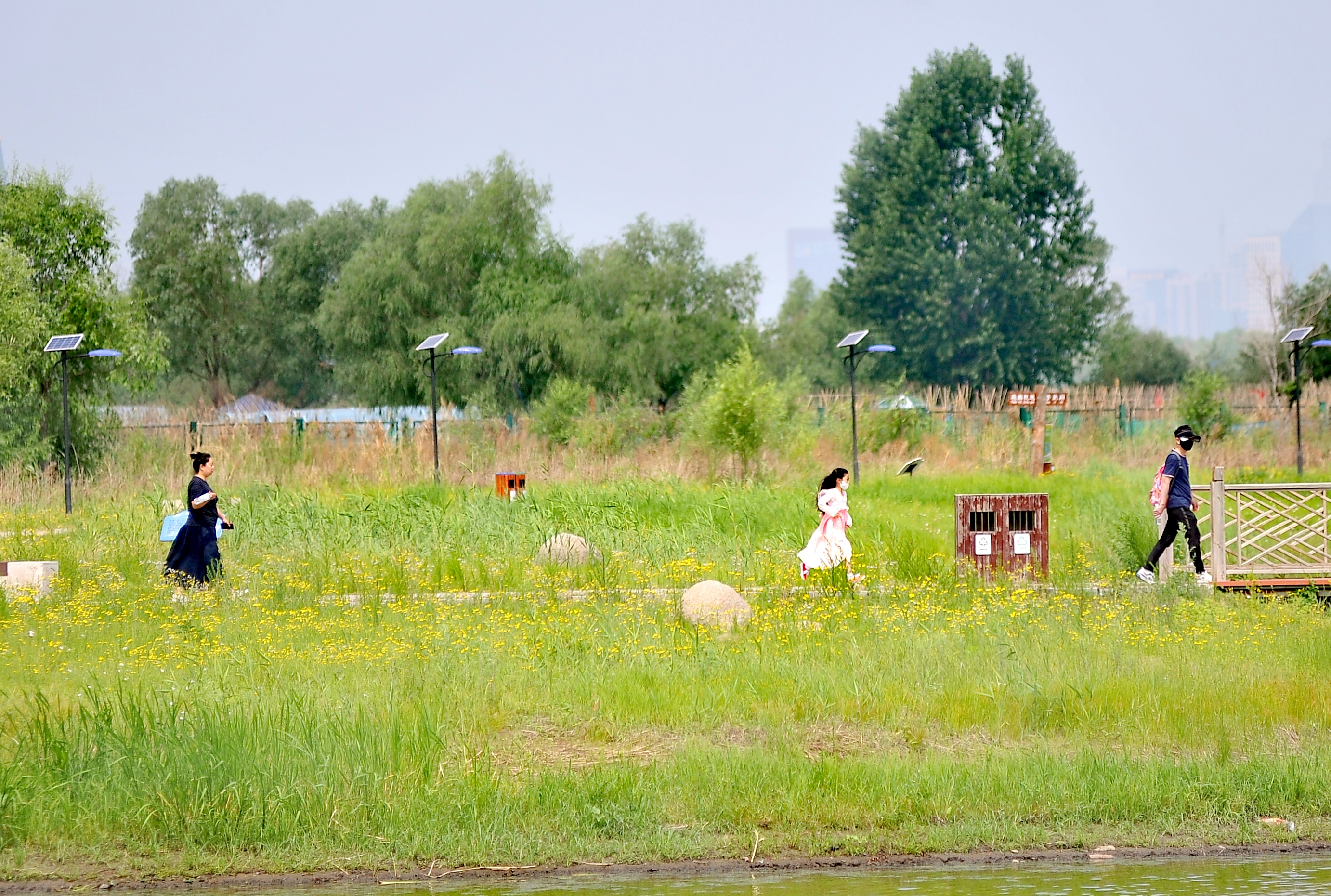哈爾濱市群力外灘濕地公園內(nèi),許多市民游玩踏青。