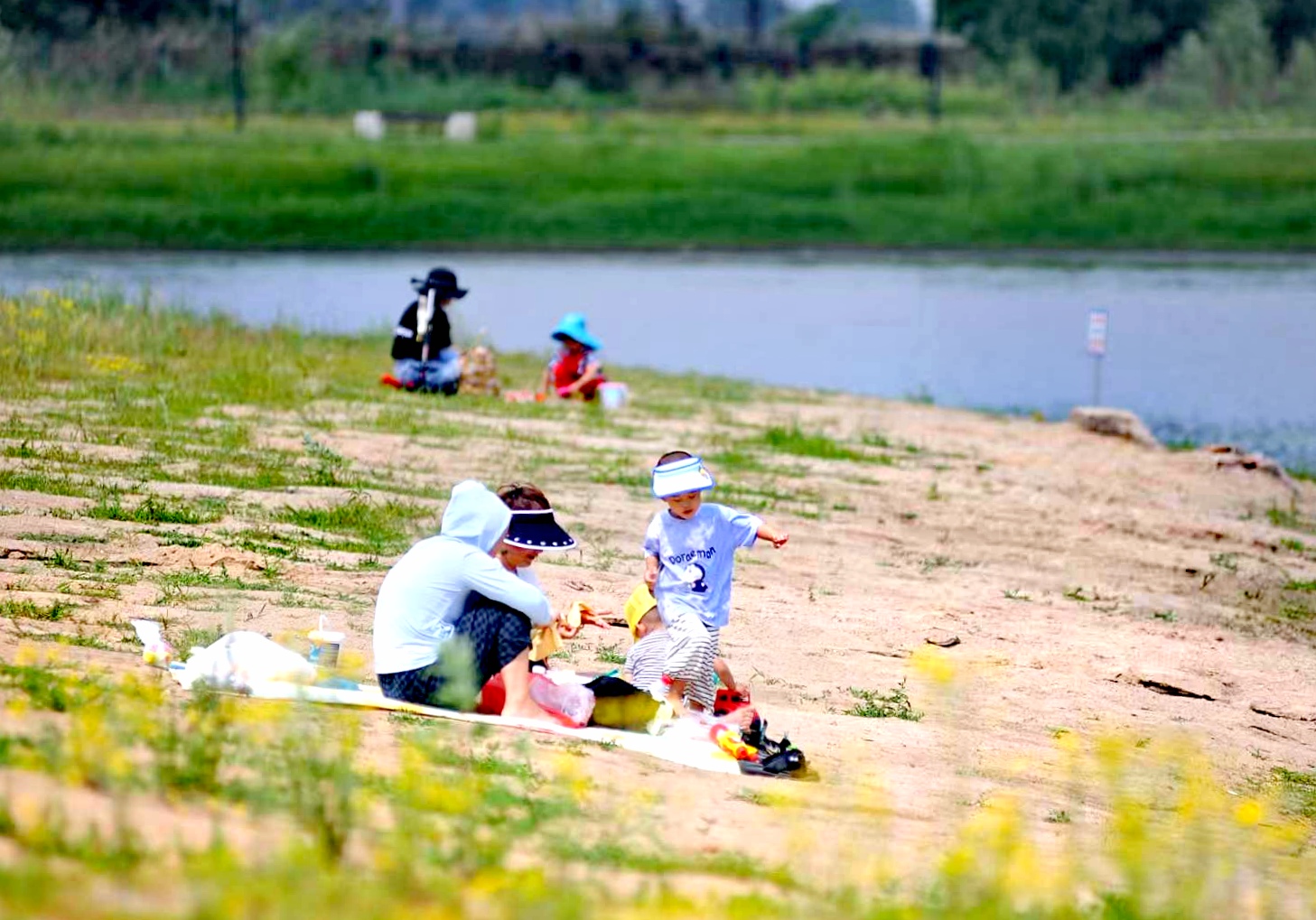 人們有的走上觀光棧橋,有的在岸邊賞花觀景,有的在忙著野餐,有的用手機(jī)拍下精彩瞬間。