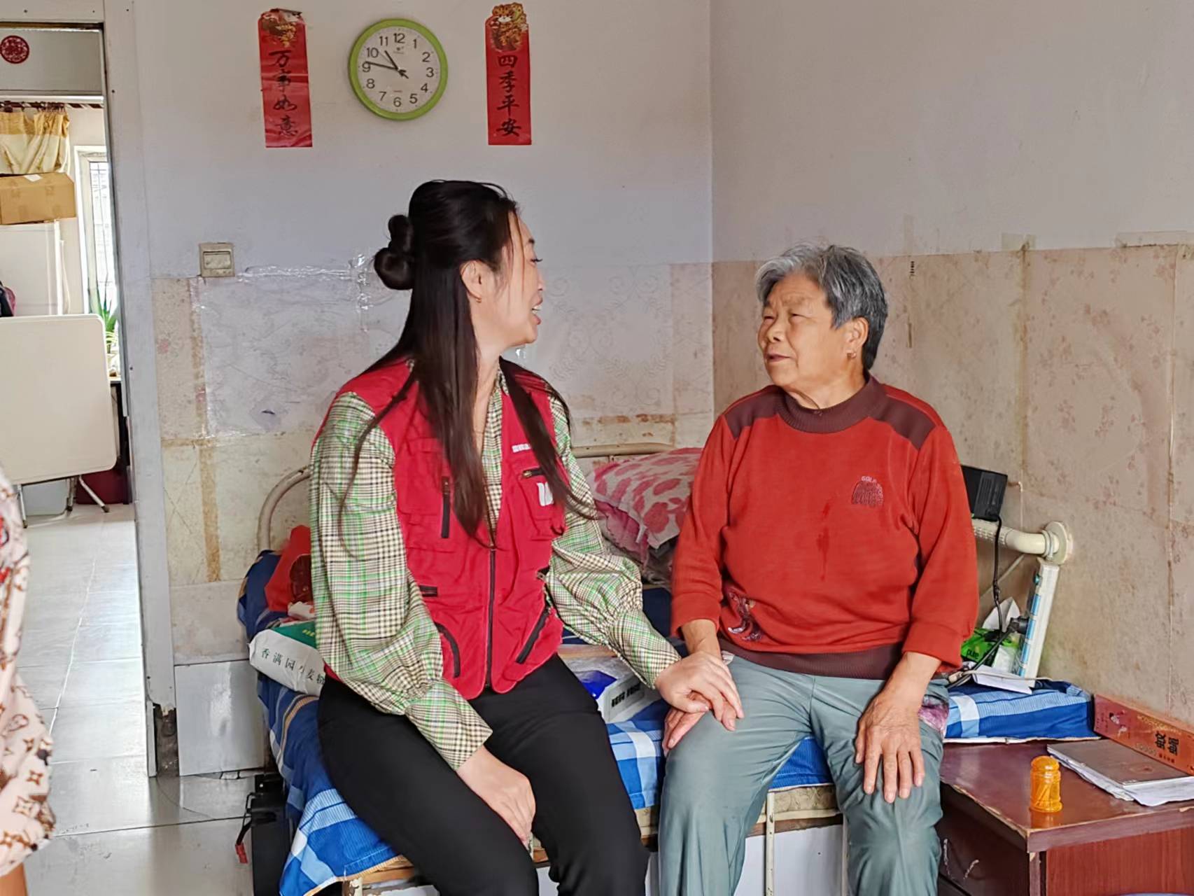 “大哥,你最近怎么樣?輪椅用著還方便嗎?我們給你拿了點大米豆油,有什么需要幫助的就和我們說。等過兩天不下雨了,咱們組織個歌唱活動,大家一起熱鬧熱鬧。”來到綏化市北林區(qū)吳桂森家中,夏賀春親切地和他拉起家常。吳桂森患有小兒麻痹癥,行動不便。