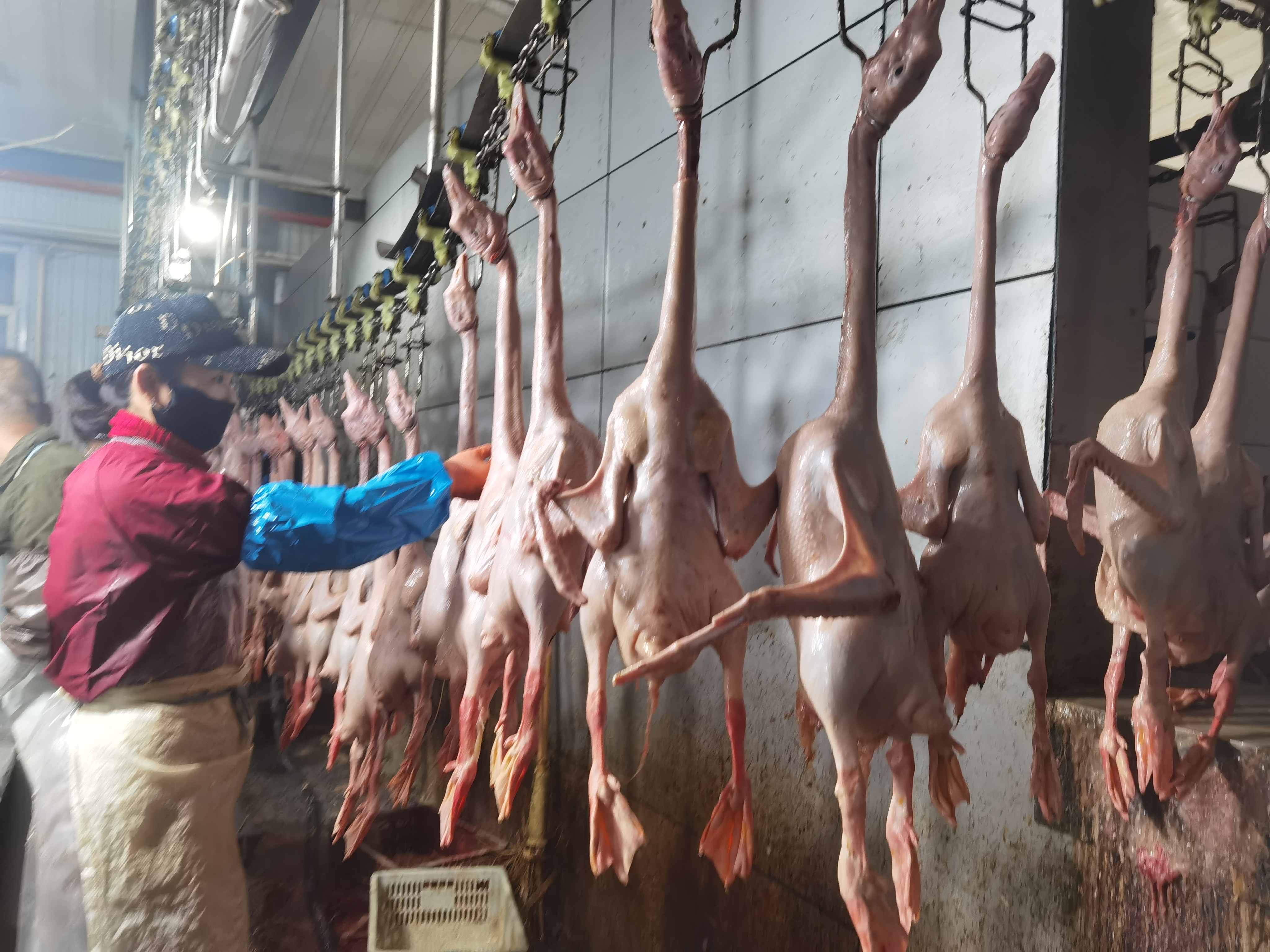 “綏濱縣委縣政府高度重視鵝產(chǎn)業(yè)發(fā)展,成立了大鵝產(chǎn)業(yè)工作專班,助力鵝產(chǎn)業(yè)發(fā)展。協(xié)調(diào)綏濱大鵝集團完成了大鵝小鎮(zhèn)9.21公頃的土地使用問題,幫助企業(yè)建立標(biāo)準(zhǔn)化廠房,發(fā)展精深加工。同時改造了綏濱大鵝品牌體驗中心,用于展示鵝產(chǎn)業(yè)精深加工產(chǎn)品。”綏濱縣經(jīng)開區(qū)管委會科員任杰接受記者采訪時說。