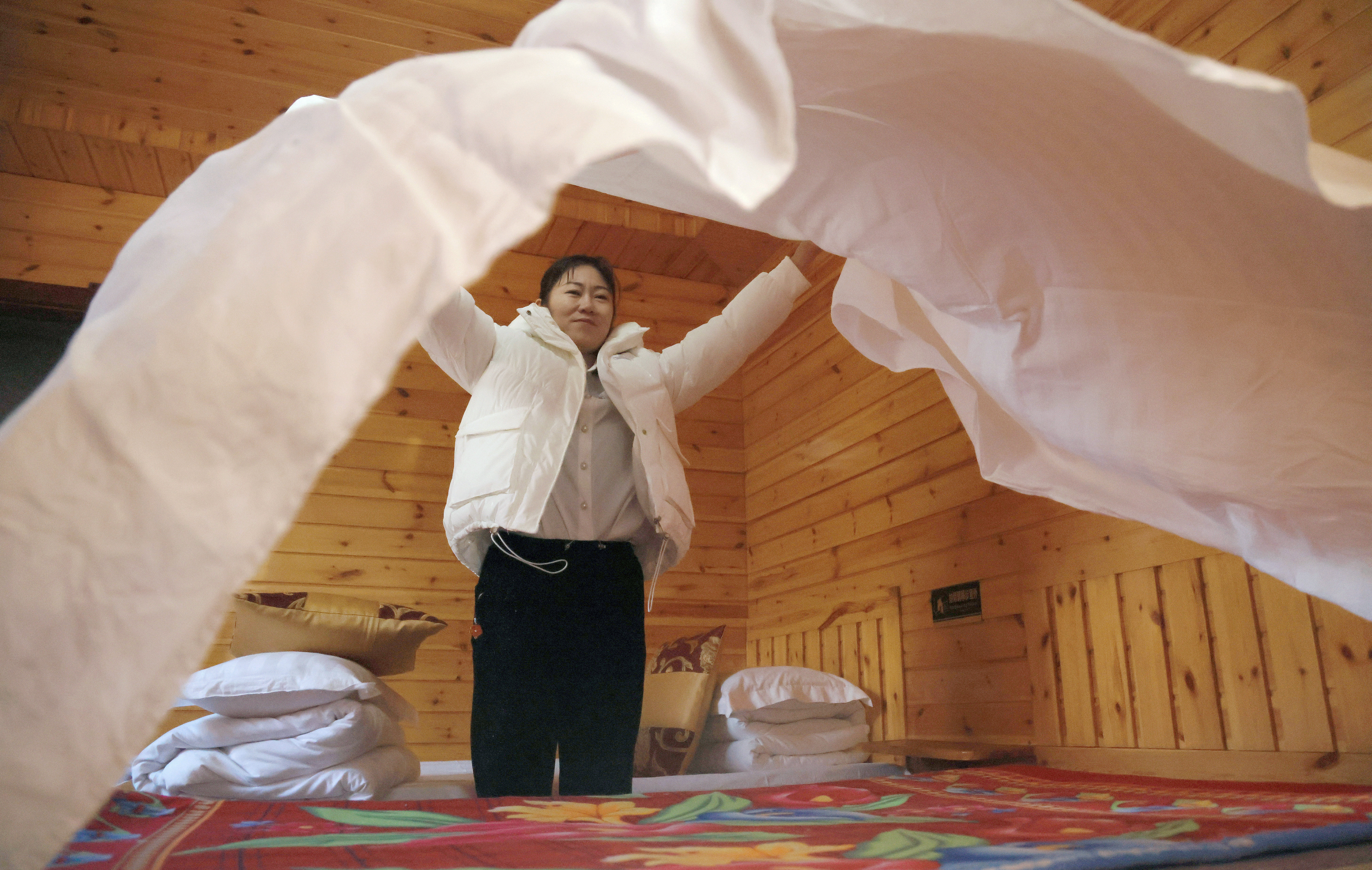 雪人木屋民宿的史瑞娟這幾天比往常還要忙,“每天早上都要認真整理自家的七八間客房,年三十更要細致些,一定要讓在自家過大年的游客們舒適溫暖?!彼业拿袼捱@半年來客流不斷,服務質量當然要跟得上?!懊袼捱@半年來也歘空整飭了些,心里一直計劃著開春時著手擴大經營規(guī)模?!笨斓街形纾谛≡捍箝T掛好紅燈籠的史瑞娟終于開始準備自家的年夜飯,勤勞的身影和臉上的笑容映著院內菜園一側新添的“幸福小院”紅色大字,喜慶祥和。