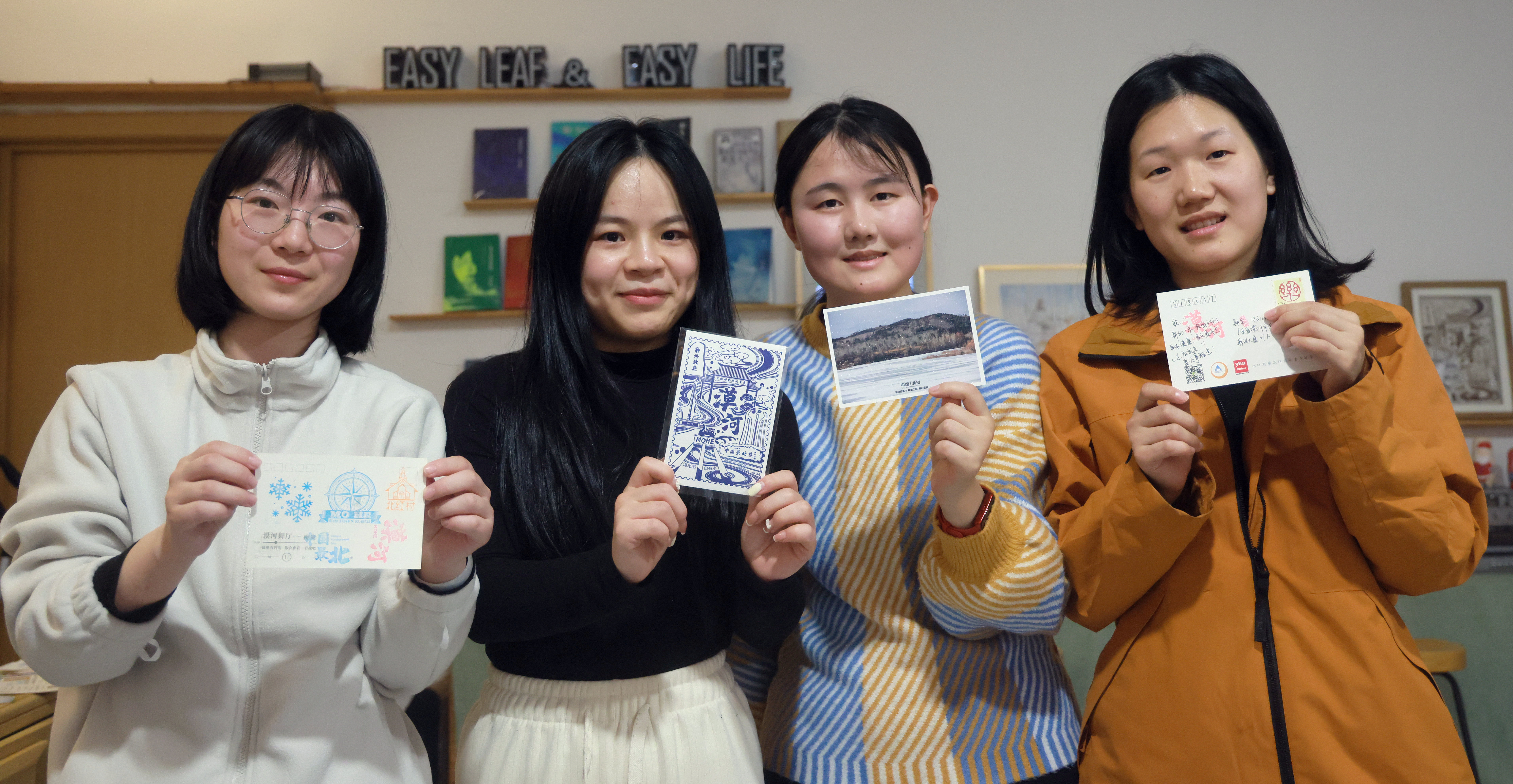 在拾葉知悠民宿里,南方游客寫好明信片準備郵寄給遠方的親朋