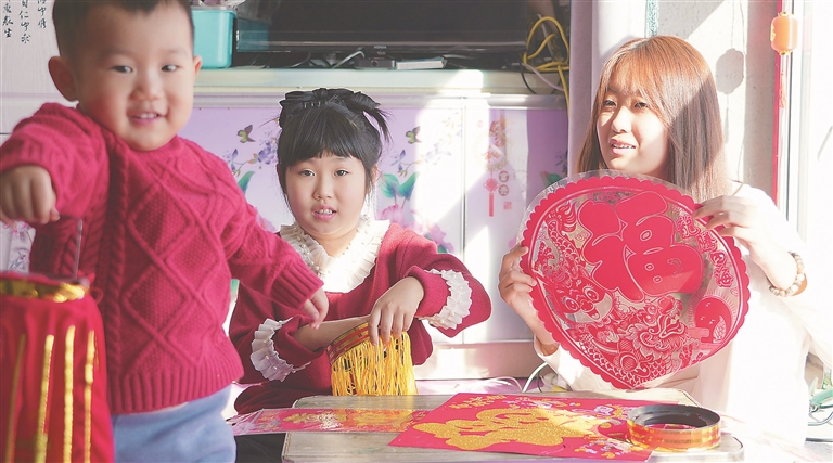 掛燈籠、貼春聯(lián)、準(zhǔn)備年夜飯,第一次在新房里過大年,楊春貴一家五口開心地忙碌著。