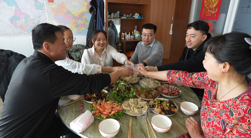 “我現(xiàn)在一個(gè)月能拿六七千的工資,這些錢(qián)是我奶、我爸媽一輩子都不敢想的,我在單位旁邊租了大房子,把他們都接來(lái)過(guò)年,我買(mǎi)了以前不舍得吃的海鮮,還給我姐買(mǎi)了新衣服。”于海旭收拾著大蝦,一臉自豪。