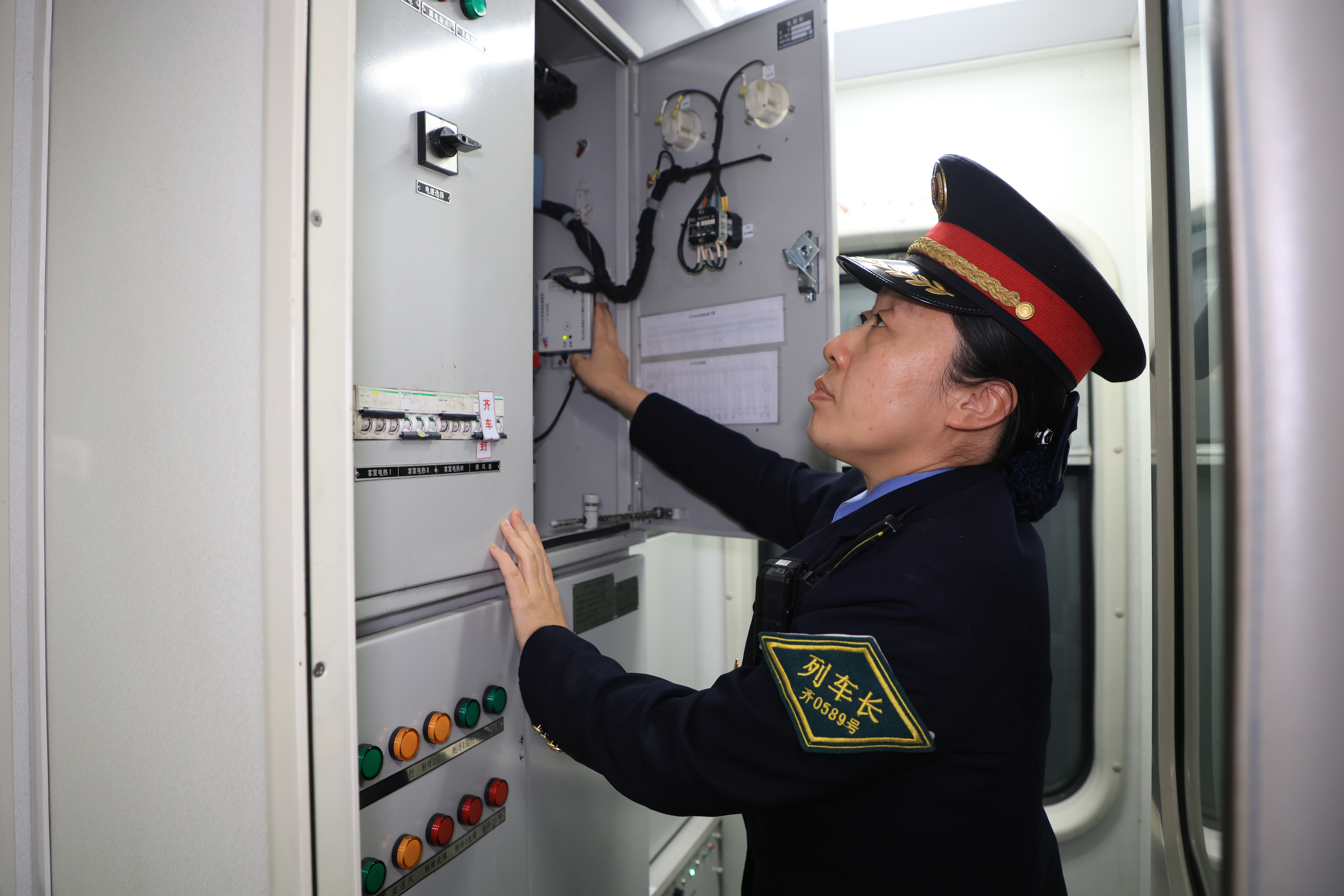 列車長李倩調(diào)整車廂溫度