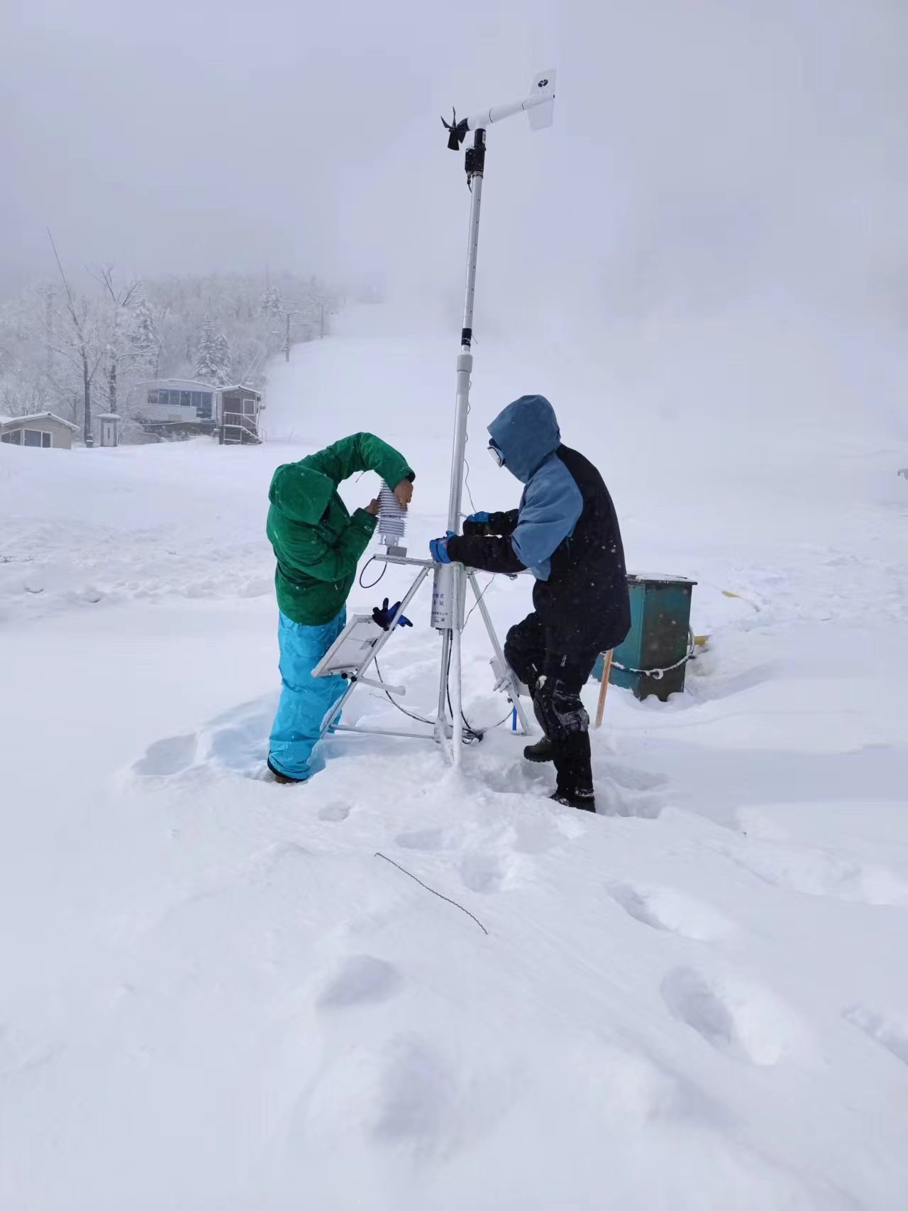 亞布力賽區(qū)冬季經(jīng)常出現(xiàn)-20℃以下嚴(yán)寒天氣,暴雪天氣頻繁,去年11月起,氣象部門在亞布力賽區(qū)1400多米高山不同海拔位置建設(shè)氣象站,每次降雪天氣都要開(kāi)展巡檢維護(hù),保證氣象監(jiān)測(cè)設(shè)備穩(wěn)定運(yùn)行。亞冬會(huì)氣象保障服務(wù)領(lǐng)導(dǎo)小組協(xié)調(diào)辦公室陳剛說(shuō),“巡檢維護(hù)時(shí),巡查員深一腳淺一腳地走在平均積雪深度約50厘米的坡路上,在維護(hù)設(shè)備時(shí),凍傷、摔倒的情況時(shí)有發(fā)生,但維護(hù)和維修工作不能停。”