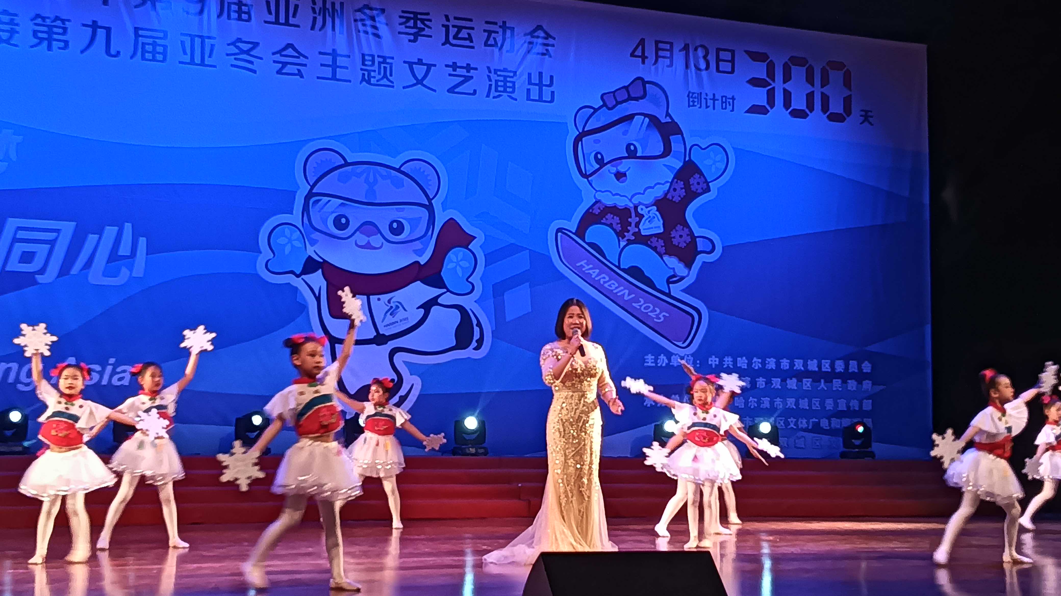 與此同時(shí),“冰雪同夢(mèng) 亞洲同心”迎亞冬會(huì)文藝演出活動(dòng)在雙城區(qū)會(huì)展中心劇場(chǎng)隆重舉行。中國(guó)鼓《鼓舞亞冬》、快板書(shū)《喜迎亞冬會(huì) 逐夢(mèng)哈爾濱》、舞蹈《祖國(guó)你好》、原創(chuàng)詩(shī)朗誦《放歌新時(shí)代》等節(jié)目接連上演,觀眾在演員的載歌載舞中喜迎2025年第九屆亞冬會(huì)。