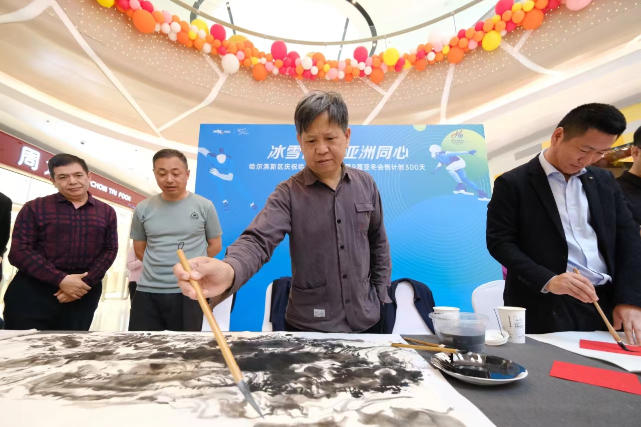 “雪韻冰城、激情亞冬”“擁亞冬之夢(mèng)、結(jié)冰雪之緣”……哈爾濱新區(qū)書畫家創(chuàng)作沙龍的老師們現(xiàn)場(chǎng)創(chuàng)作,一幅幅書畫作品激情澎湃,鏗鏘有力。哈爾濱書法家協(xié)會(huì)負(fù)責(zé)人劉玉龍邊寫邊說(shuō):“2025年亞冬會(huì)在哈爾濱舉辦,是每一位市民的光榮,作為書法愛(ài)好者,要用手中的畫筆為亞冬會(huì)增光添彩”。