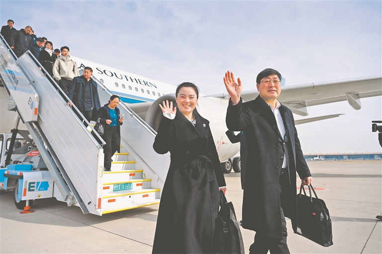 3日上午,出席十四屆全國人大三次會議的黑龍江省代表團抵京。本報記者 郭俊峰攝