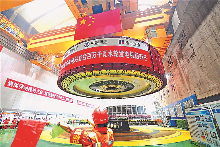 哈電電機(jī)公司自主研制的白鶴灘水電站100萬(wàn)千瓦水電機(jī)組。本報(bào)記者 郭俊峰攝