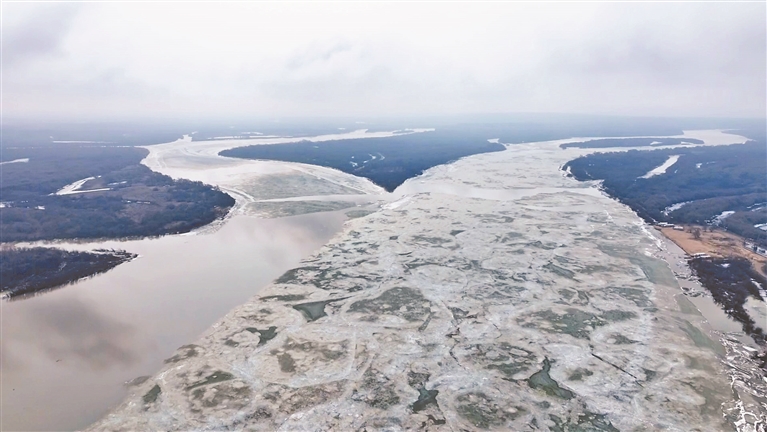 在虎林市虎頭鎮(zhèn)域內(nèi)的烏蘇里江沿線,由于氣溫回暖,隨著上游來水增多,冰層開始斷裂,巨大的冰塊在江水推動(dòng)下緩緩移動(dòng),冰排在摩擦中不斷斷裂,千姿百態(tài)的浮冰跟著江水一起奔騰。