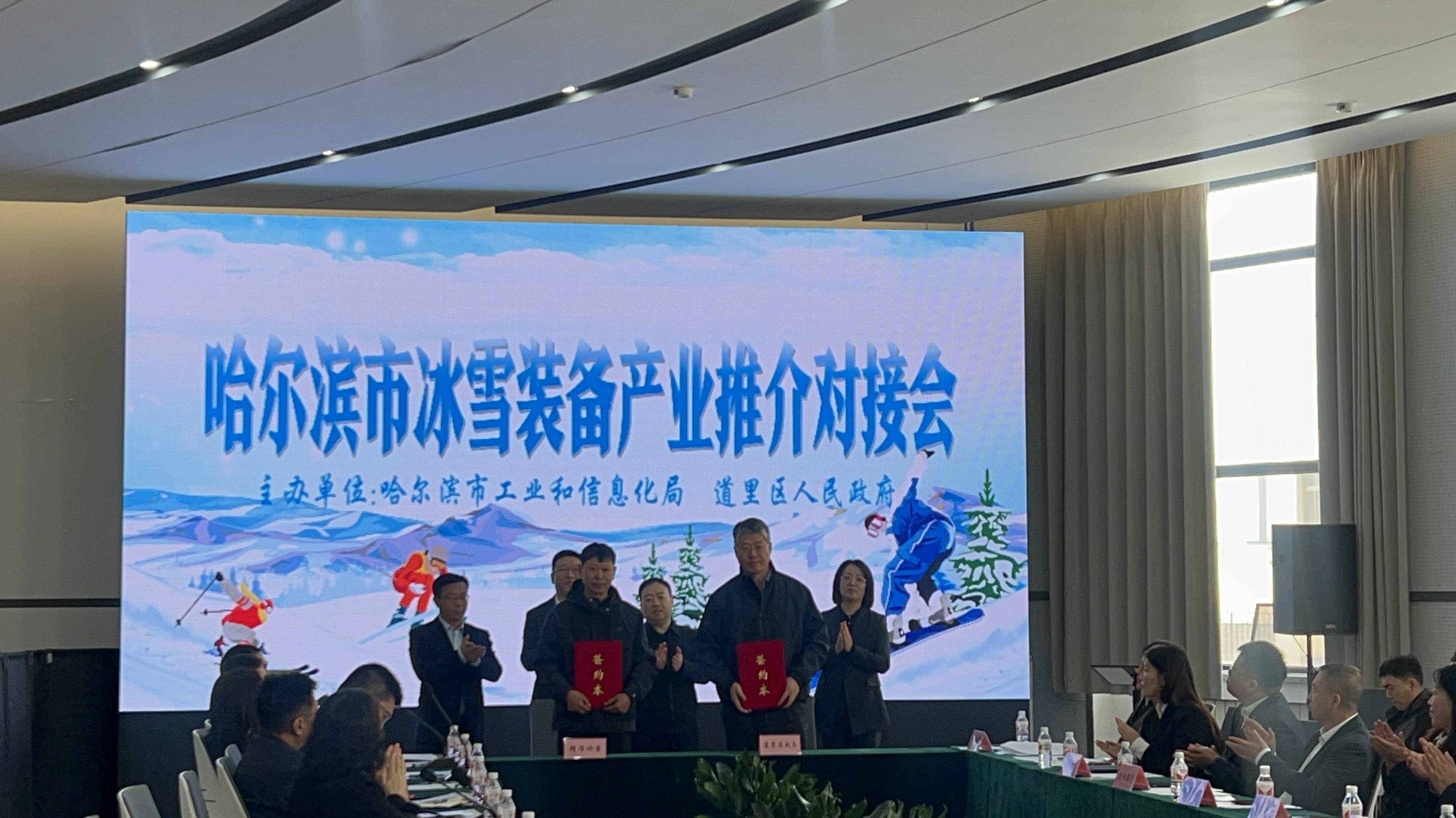 哈爾濱市道里區(qū)圍繞產(chǎn)業(yè)園建設(shè)進(jìn)展、土地支持、稅收優(yōu)惠等配套政策作專題推介,為企業(yè)投資布局提供清晰政策路徑。哈工大、省科學(xué)院、中電科49所等分別發(fā)布冰雪裝備領(lǐng)域前沿科技成果22項(xiàng),涵蓋智能冰雪裝備、低溫材料應(yīng)用等關(guān)鍵領(lǐng)域,推動產(chǎn)學(xué)研用深度融合。哈爾濱市科技局、哈爾濱市金融服務(wù)局分別解讀科技成果轉(zhuǎn)化補(bǔ)貼、知識產(chǎn)權(quán)質(zhì)押融資等惠企政策,為企業(yè)創(chuàng)新與資金周轉(zhuǎn)提供“政策工具箱”,哈爾濱銀行等5家金融機(jī)構(gòu)對30多家冰雪裝備企業(yè)進(jìn)行金融政策和產(chǎn)品宣講。會上,黑龍江道里經(jīng)濟(jì)開發(fā)區(qū)管理委員會與哈爾濱市精準(zhǔn)冰雪技術(shù)應(yīng)用中心簽訂了入駐哈爾濱冰雪運(yùn)動裝備制造產(chǎn)業(yè)園框架協(xié)議。