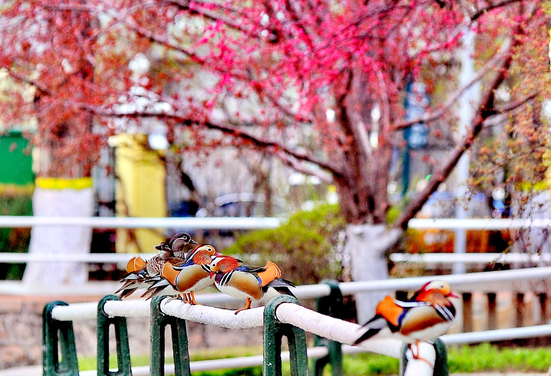據(jù)該公園職工車春虎介紹,因湖岸維修,今年放水時間晚于常年。開春時遷徙來的鴛鴦們,一直在公園的樹上、假山活動,公園員工不間斷地對它們?nèi)斯ね段埂W鳛榭醋o(hù)鴛鴦多年的野保志愿者,車春虎表示,在完成放水后,會有更多的鴛鴦來這里覓食,五一假期,兆麟公園會成為市民賞鳥的一個好去處。