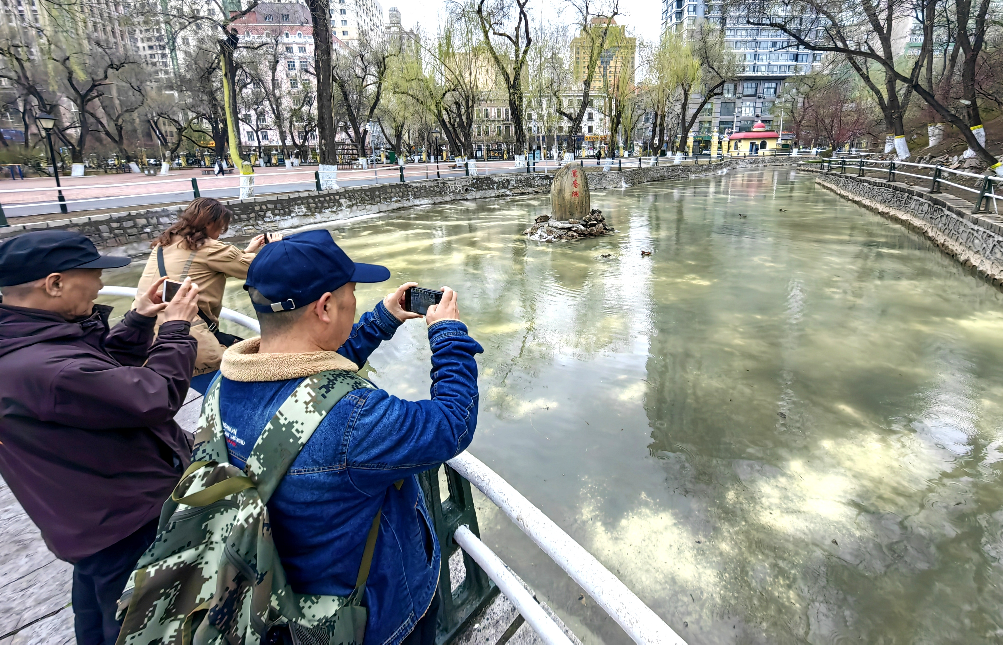 4月25日,哈爾濱市兆麟公園對鴛鴦湖進(jìn)行了今年的首次放水,吸引來百余只野生鴛鴦戲水覓食。