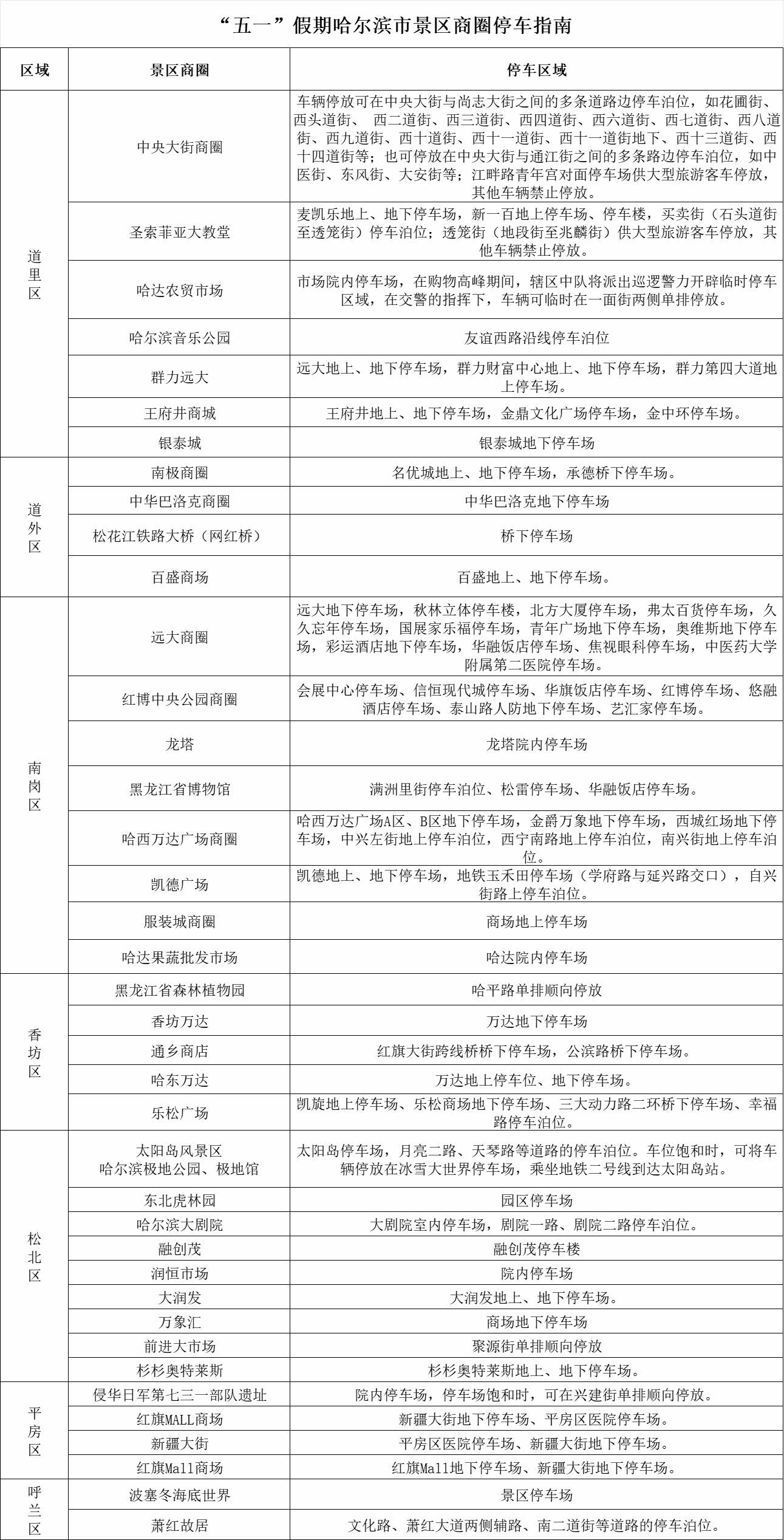“五一”假期哈爾濱市景區(qū)商圈停車指南