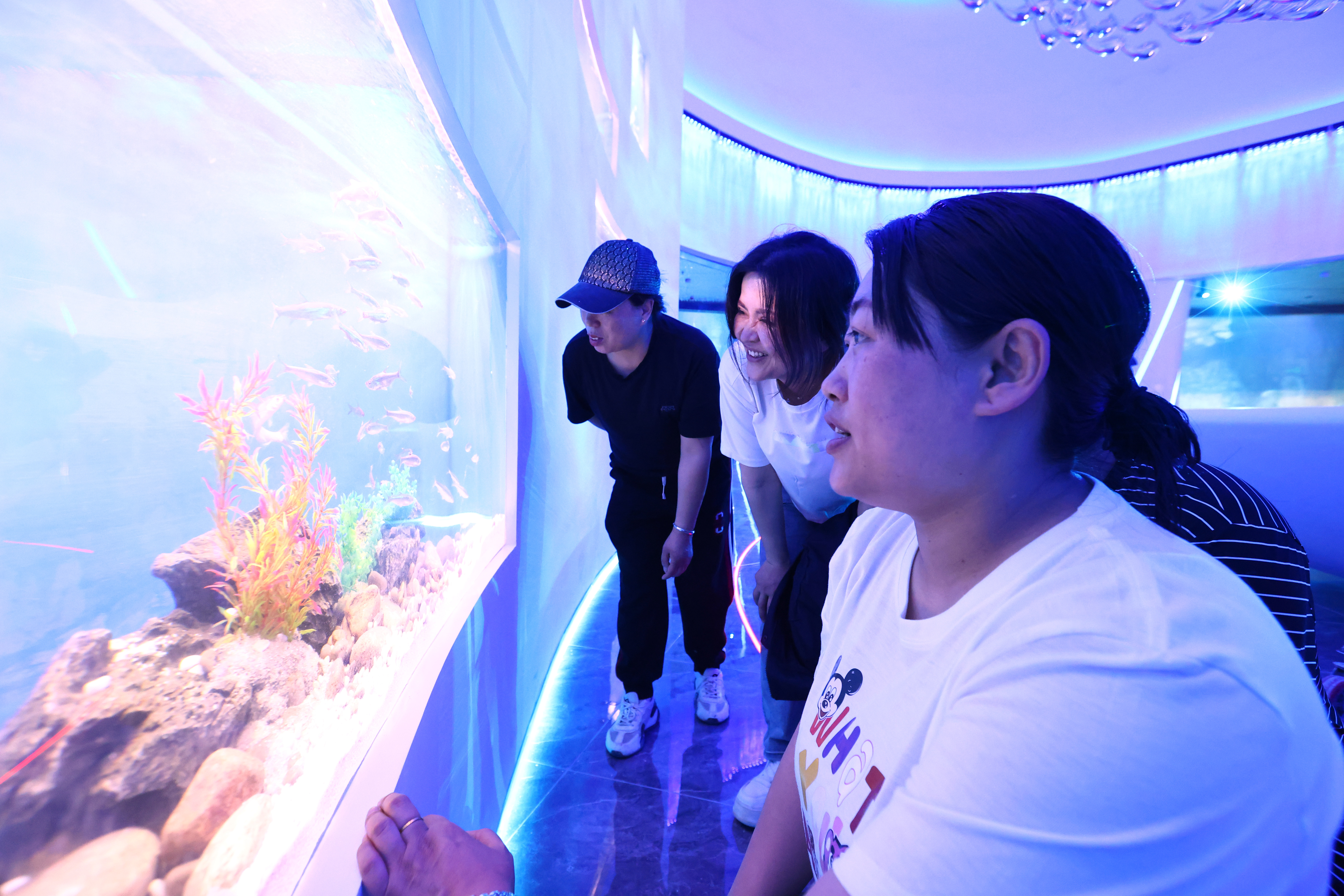 游客觀看水族箱里的魚