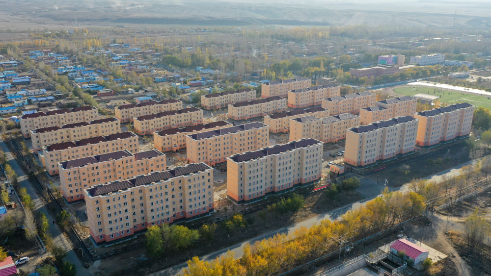 這是2020年10月16日拍攝的新疆昌吉市阿什里鄉(xiāng)天鵝小鎮(zhèn)(無(wú)人機(jī)照片)。由福建援疆泉州分指揮部支援建設(shè)的天鵝小鎮(zhèn)是牧民定居項(xiàng)目,數(shù)百戶牧民結(jié)束游牧生活,住進(jìn)天鵝小鎮(zhèn)實(shí)現(xiàn)定居。新華社記者 丁磊 攝