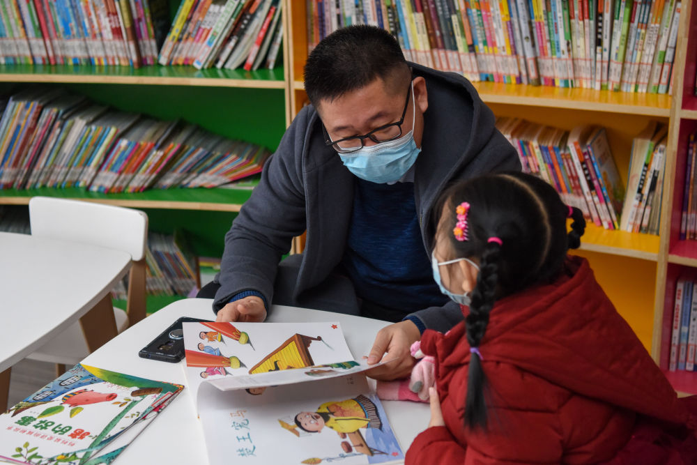 在新疆鞏留縣,市民帶著孩子來(lái)到由江蘇省張家港市援疆工作組援建的“石榴籽”書(shū)屋讀書(shū)(2月7日攝)。新華社記者 丁磊 攝