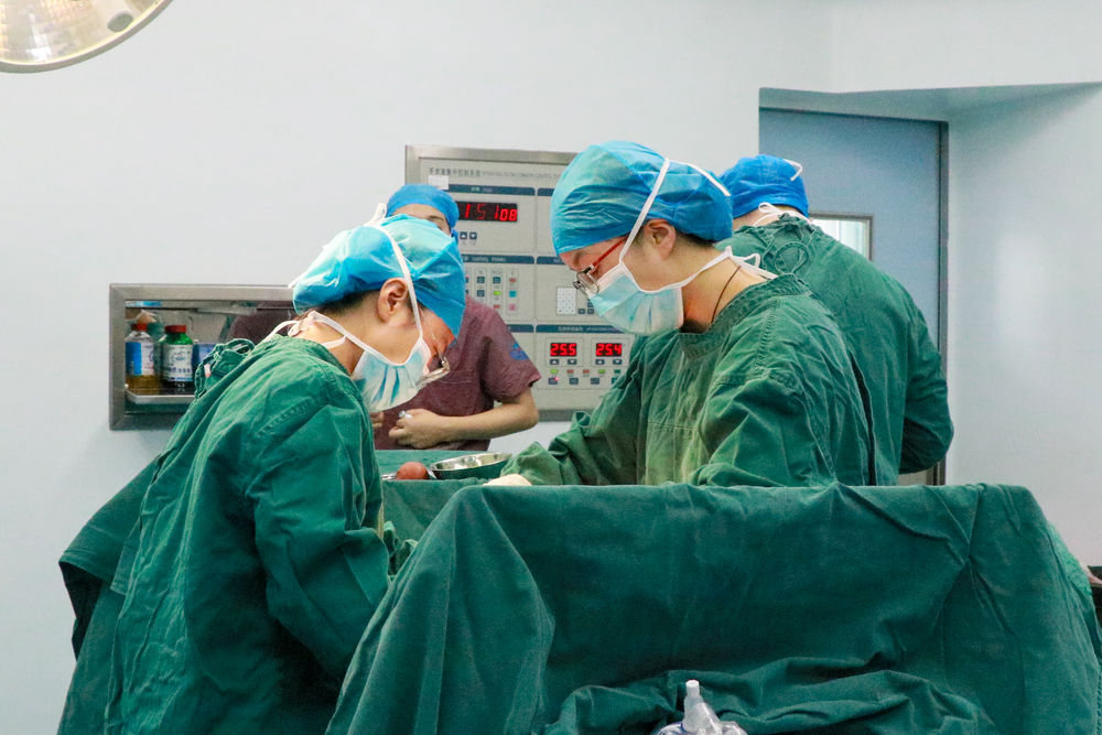 在新疆庫(kù)車市人民醫(yī)院,浙江寧波援疆醫(yī)生黃芳(前右)在接生她援疆以來(lái)的第100個(gè)新生兒(6月29日攝)。新華社發(fā)(王欣然 攝)
