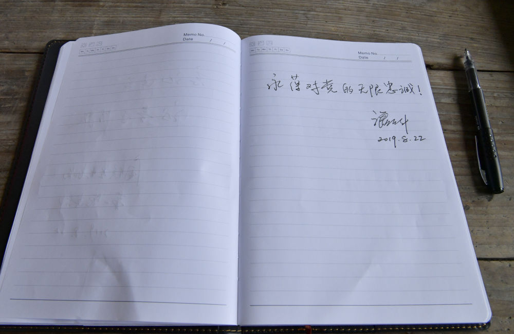 潘東升參加主題黨日活動(dòng),手書(shū)“永葆對(duì)黨的無(wú)限忠誠(chéng)”(2019年8月22日攝)。新華社發(fā)(福州市公安局供圖)