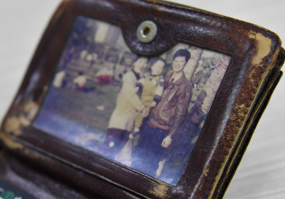 潘東升使用多年的錢(qián)包里面珍藏著多年前一家人的合影(2021年10月16日攝)。新華社發(fā)(福州市公安局供圖)
