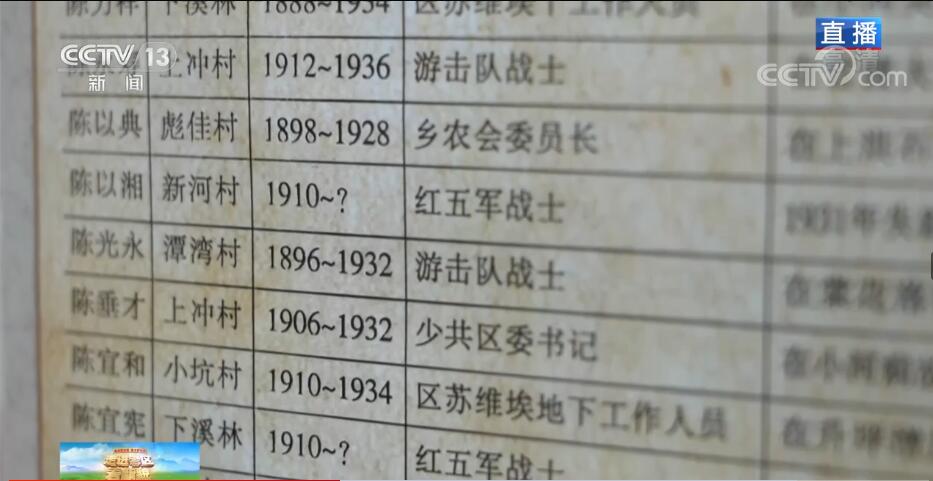 第二個(gè)數(shù)字:342。1933年,紅十八軍就在陳列室對(duì)面的山頭成立,一大批有志青年由此走上革命道路。這份長(zhǎng)長(zhǎng)的名單僅僅是部分小河籍烈士,一共342人。