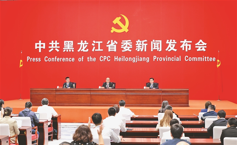 “中國這十年·黑龍江”主題新聞發(fā)布會現(xiàn)場。 本報(bào)記者 邵國良 郭俊峰 攝