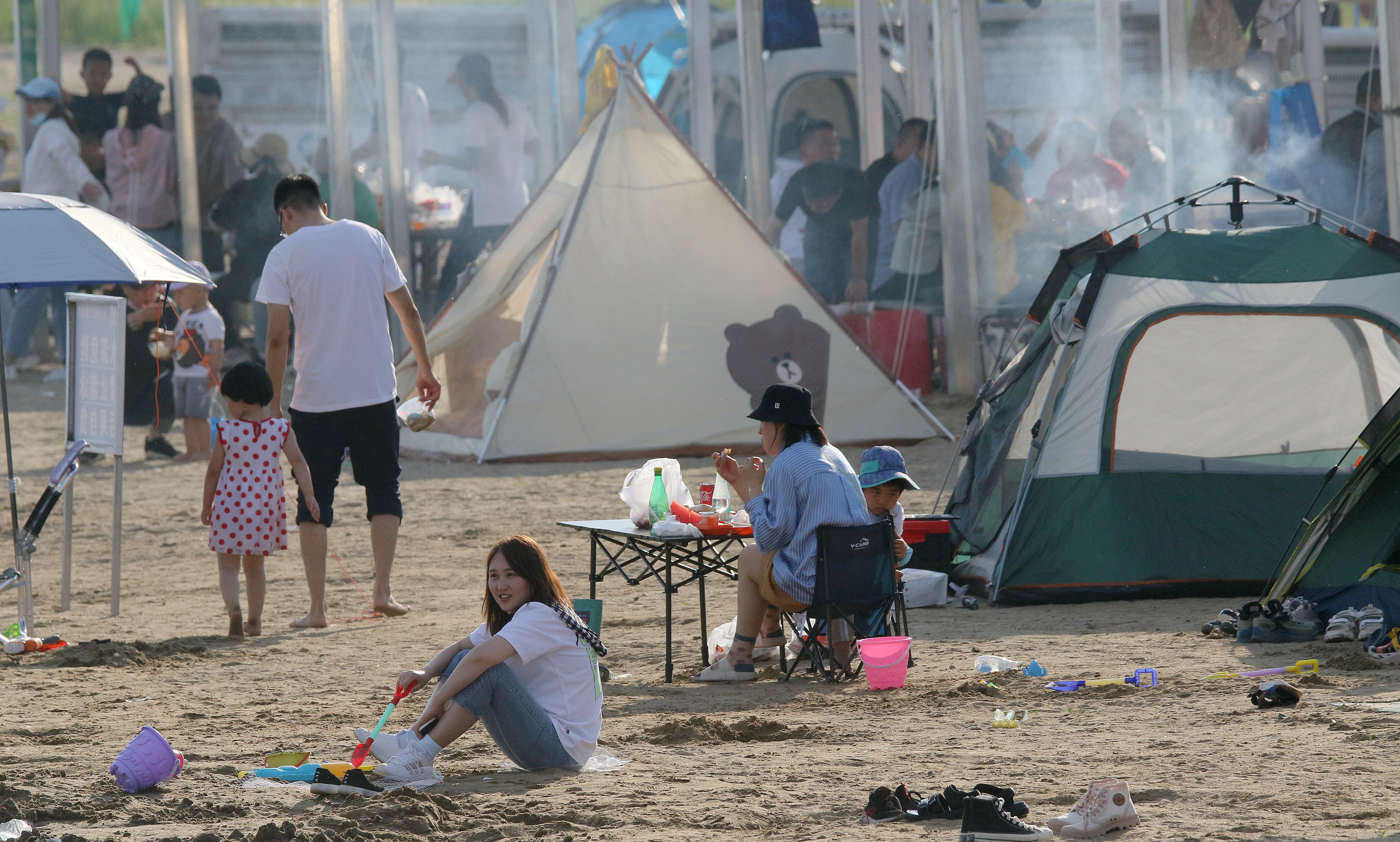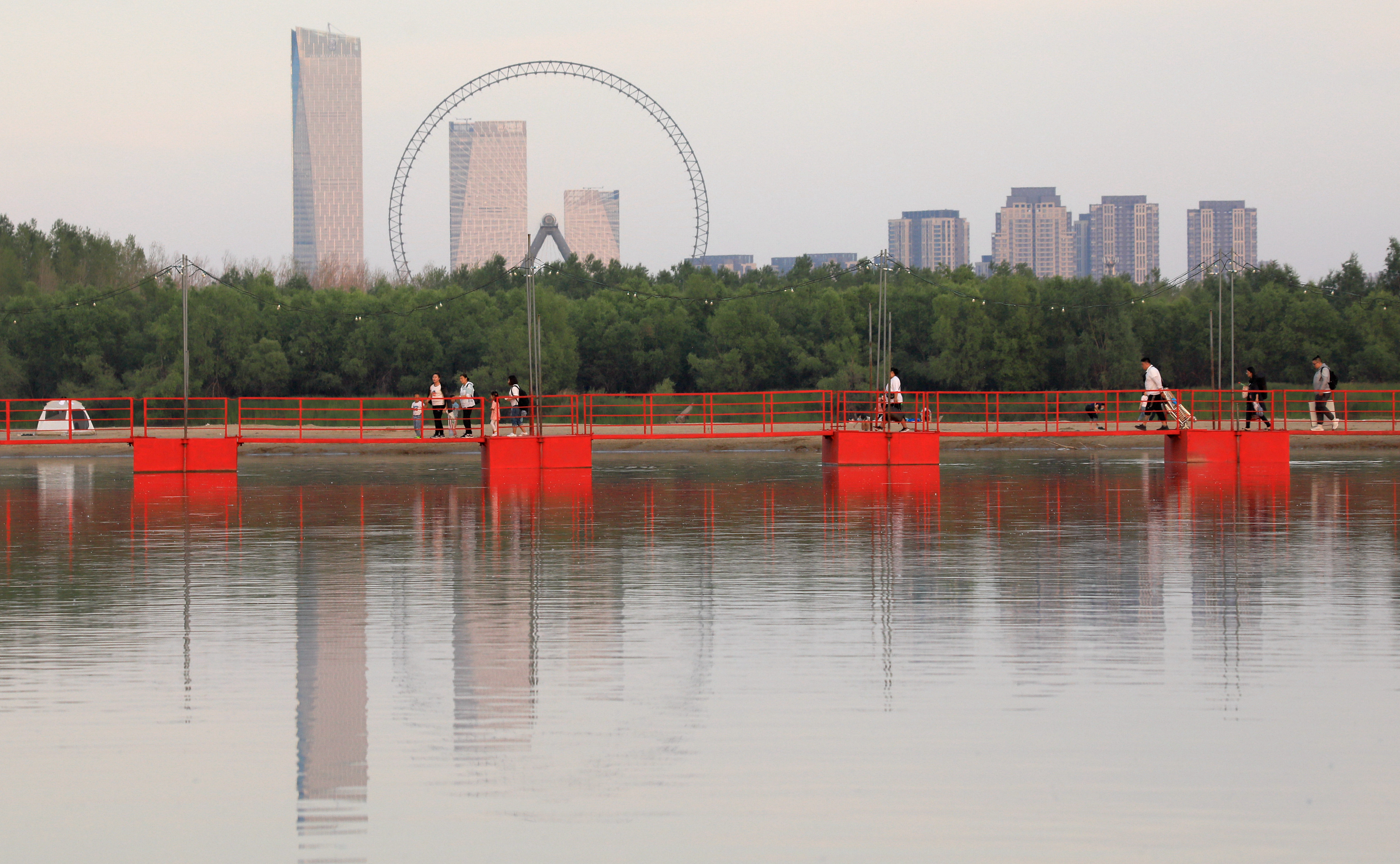 6月仲夏,哈爾濱市民紛紛到松花江畔的各個(gè)濕地間休閑避暑。