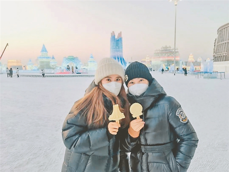 來到哈爾濱冰雪大世界園區(qū)可以看到,看冰雪、吃雪糕、拍照曬圖,已經(jīng)成為許多游客的共同選擇。本報(bào)記者 蔡韜攝