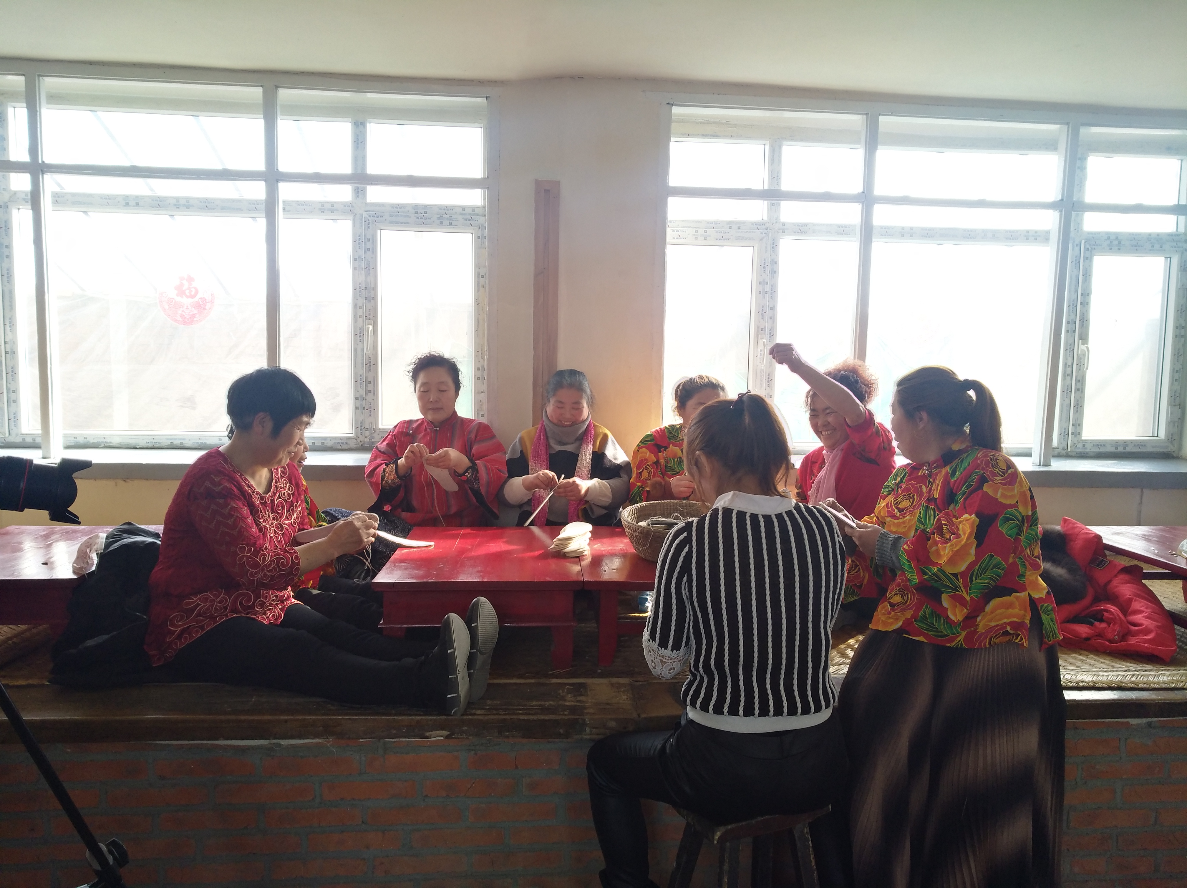村民一起納鞋底兒