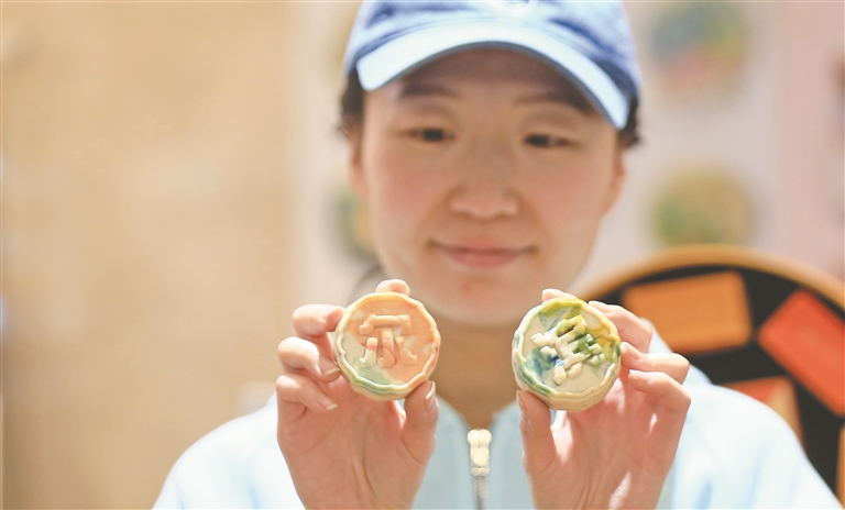 在哈爾濱市索菲亞景區(qū)旁邊的一家蛋糕店內(nèi),以索菲亞教堂、哈爾濱站、雪花摩天輪等哈爾濱地標建筑為造型,由“雪花”以及“千里江山圖”“金魚滿堂”等傳統(tǒng)吉祥圖案制作而成的文創(chuàng)月餅受到游客和市民的青睞。