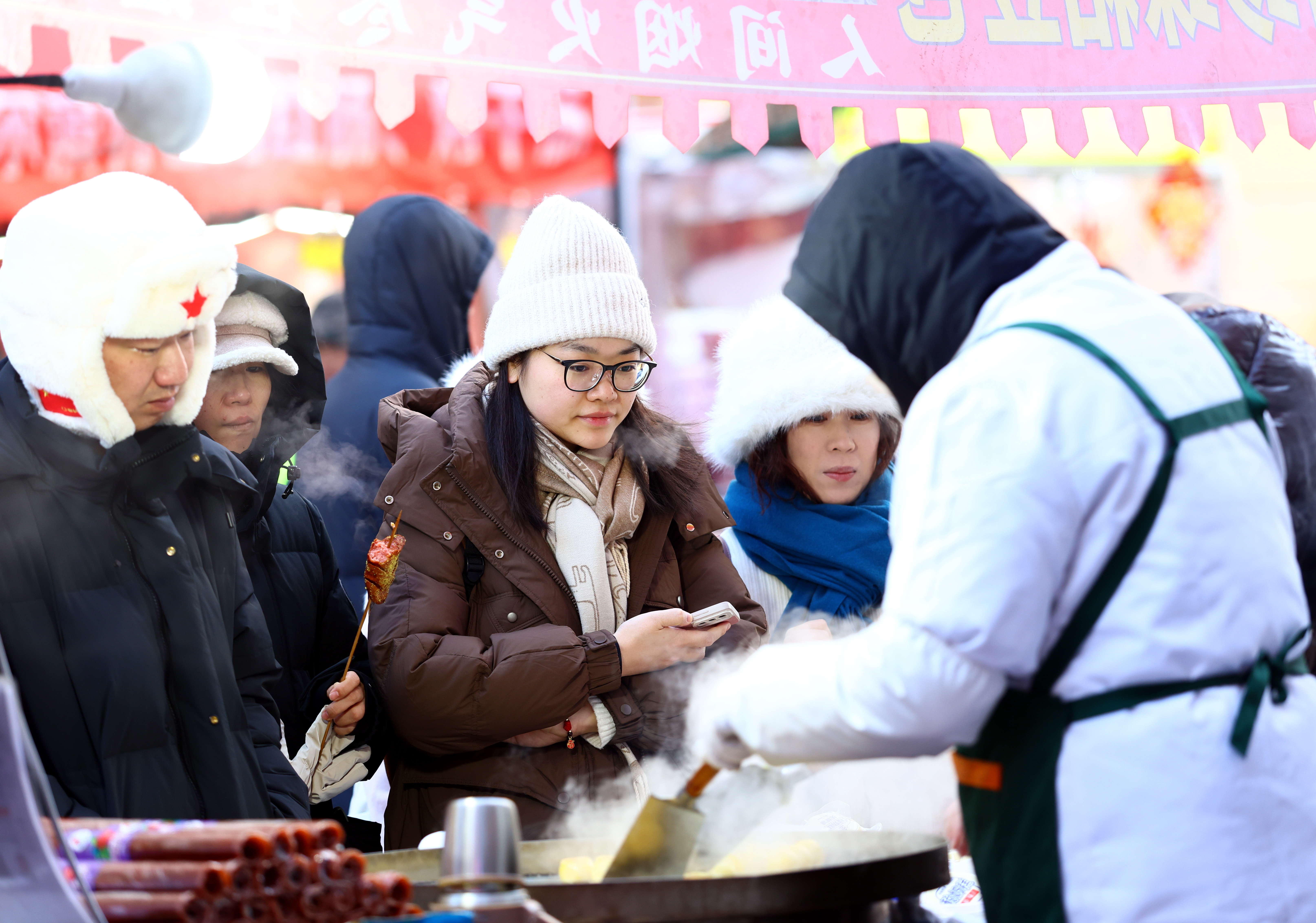 大年初一,哈爾濱紅專街早市熱鬧非凡,來自五湖四海的外地游客匯聚于此,共同感受濃濃的東北年味。