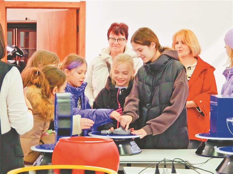 俄羅斯小朋友在了解科普儀器。本報記者 杜懷宇攝