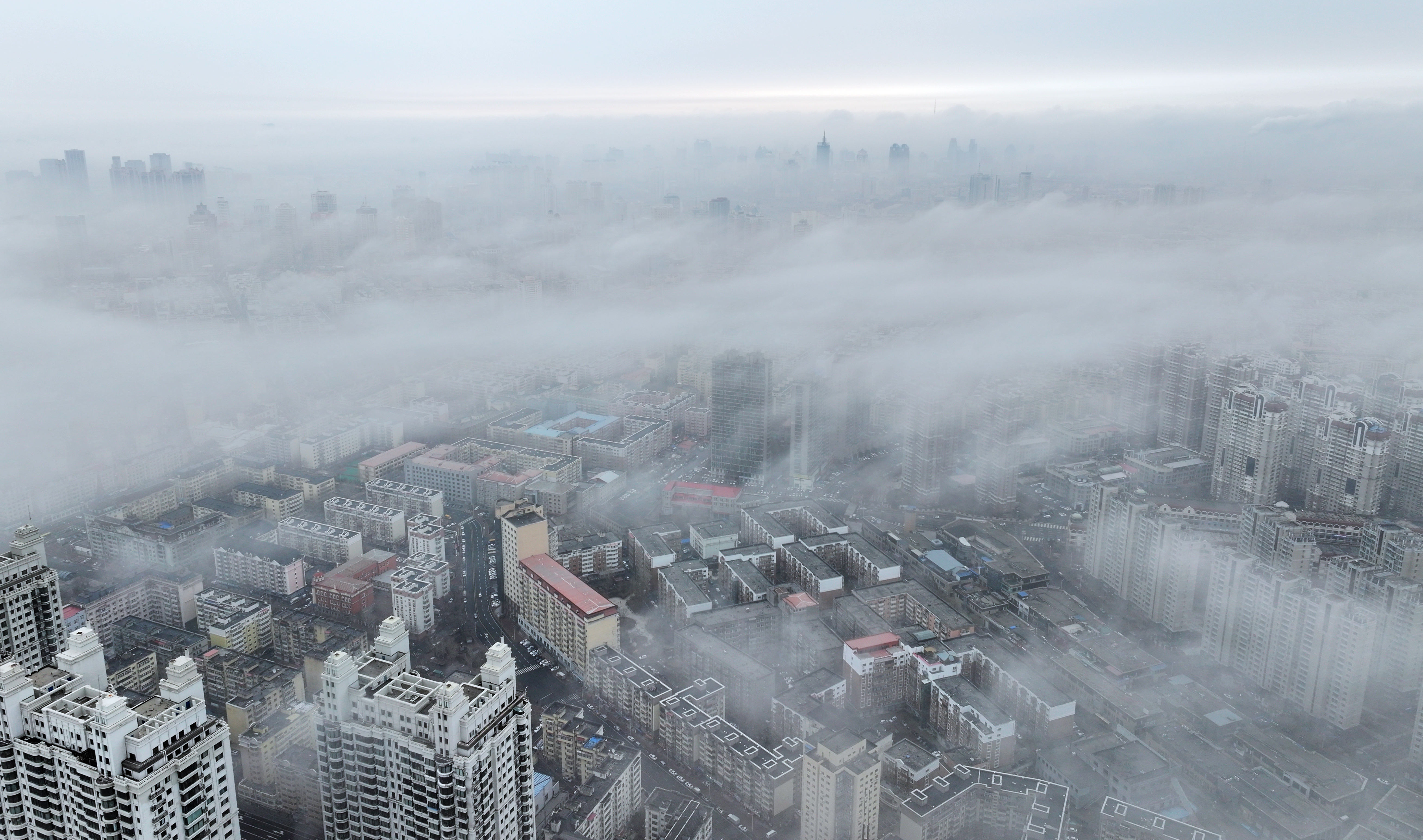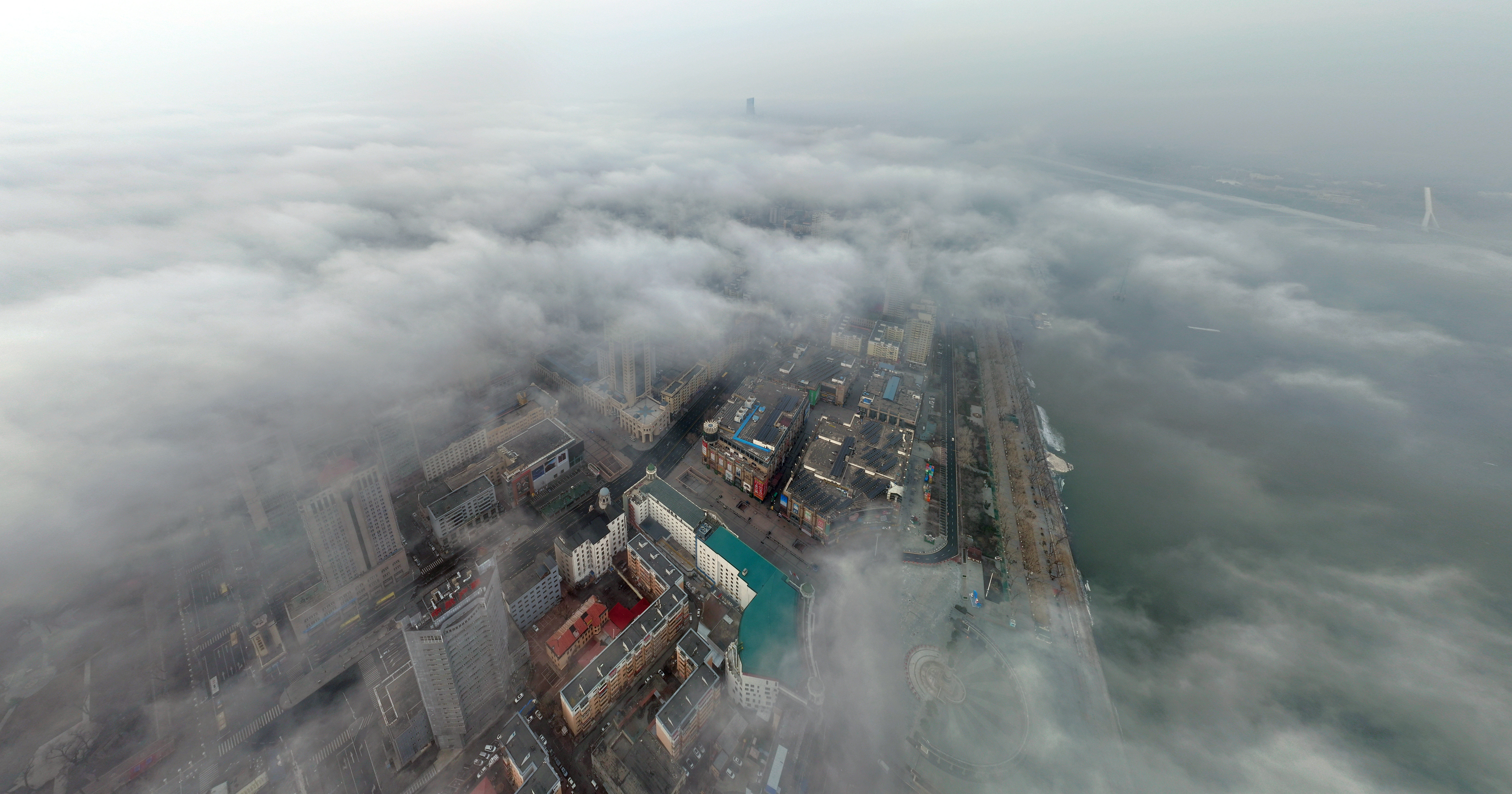 4月7日5時(shí)許,哈爾濱市被一場(chǎng)濃霧籠罩。松花江上,漁船化作剪影,鷗鳥僅聞啼鳴,早春的景色如水墨畫般淡雅。